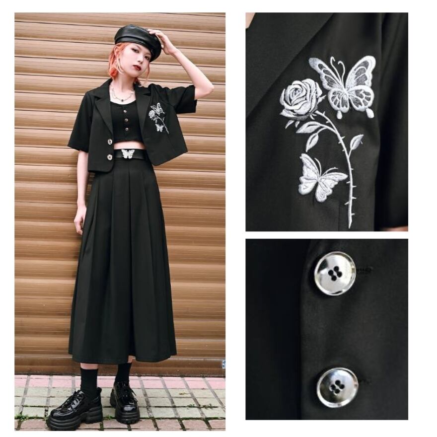 サブカル 服 地雷系 通販 チャイナ風服 チャイナ風服 古怪舎 ジャケット ショート丈 butterfly 中国刺繍チャイナ服 チャイナ風 ストリート系
