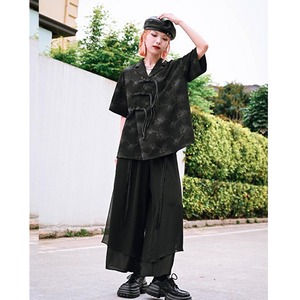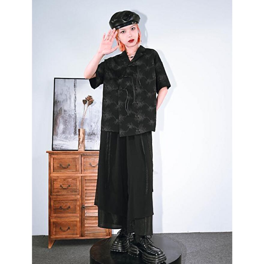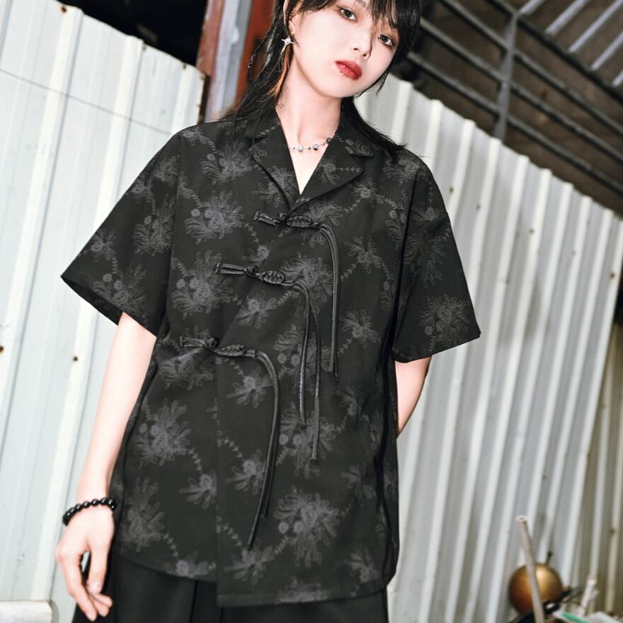 ストリート系ファッションにも、サブカルチャーにも似合うデザインのため、着こなし次第で幅広いシーンに対応可能なチャイナ風半袖シャツです。