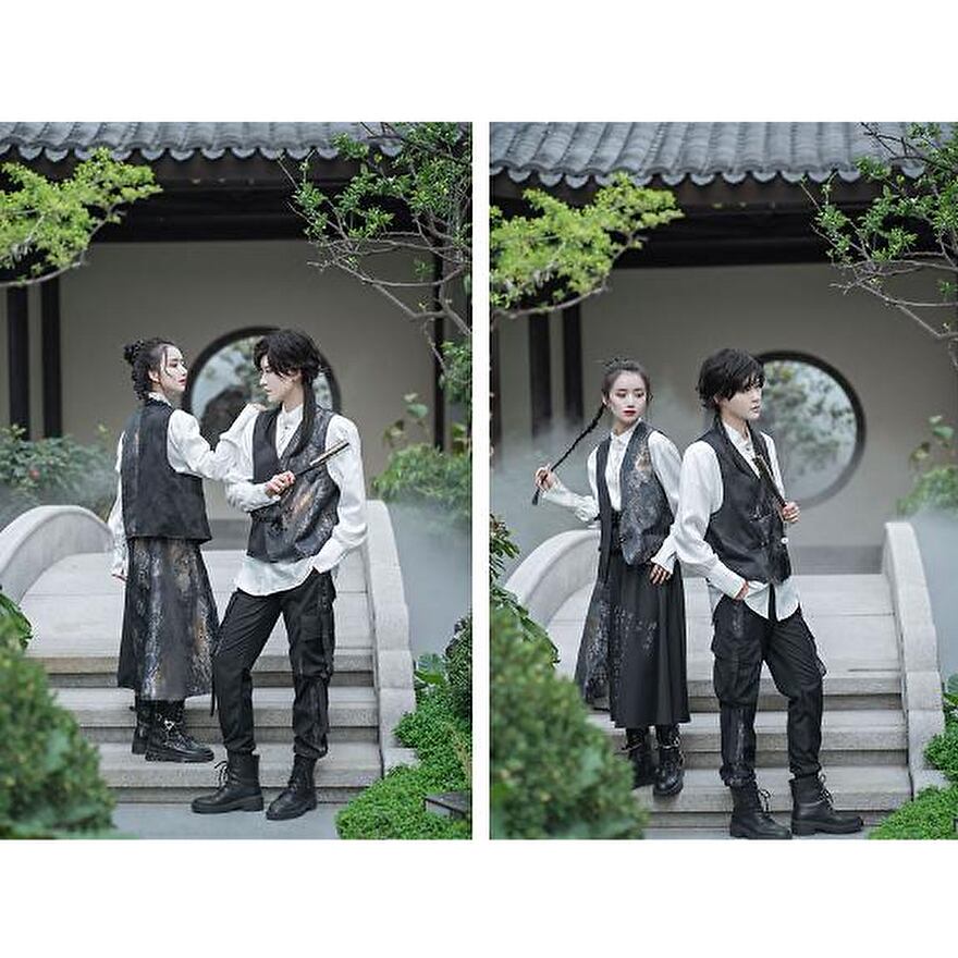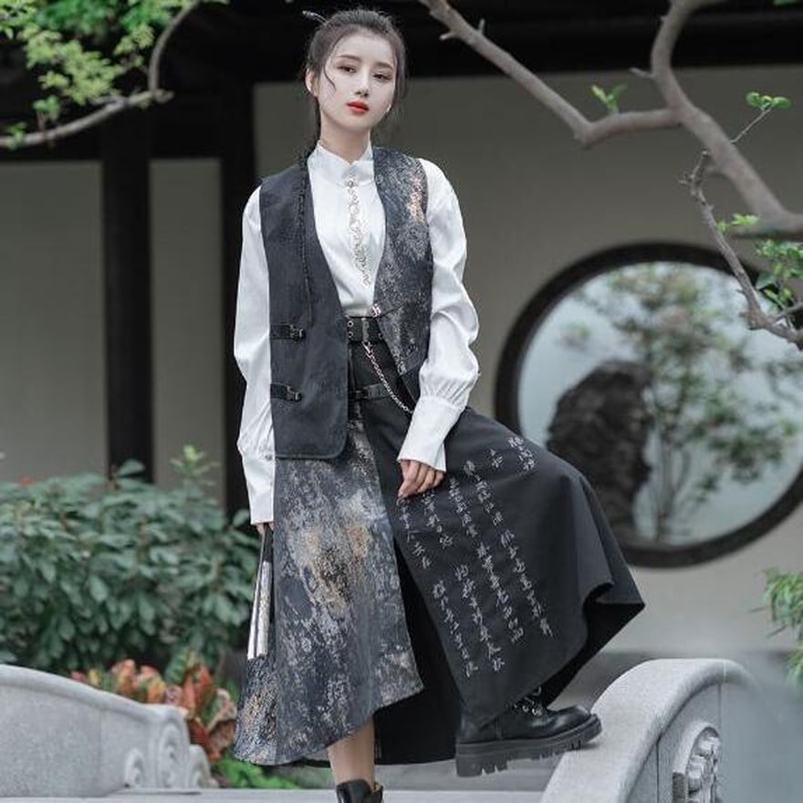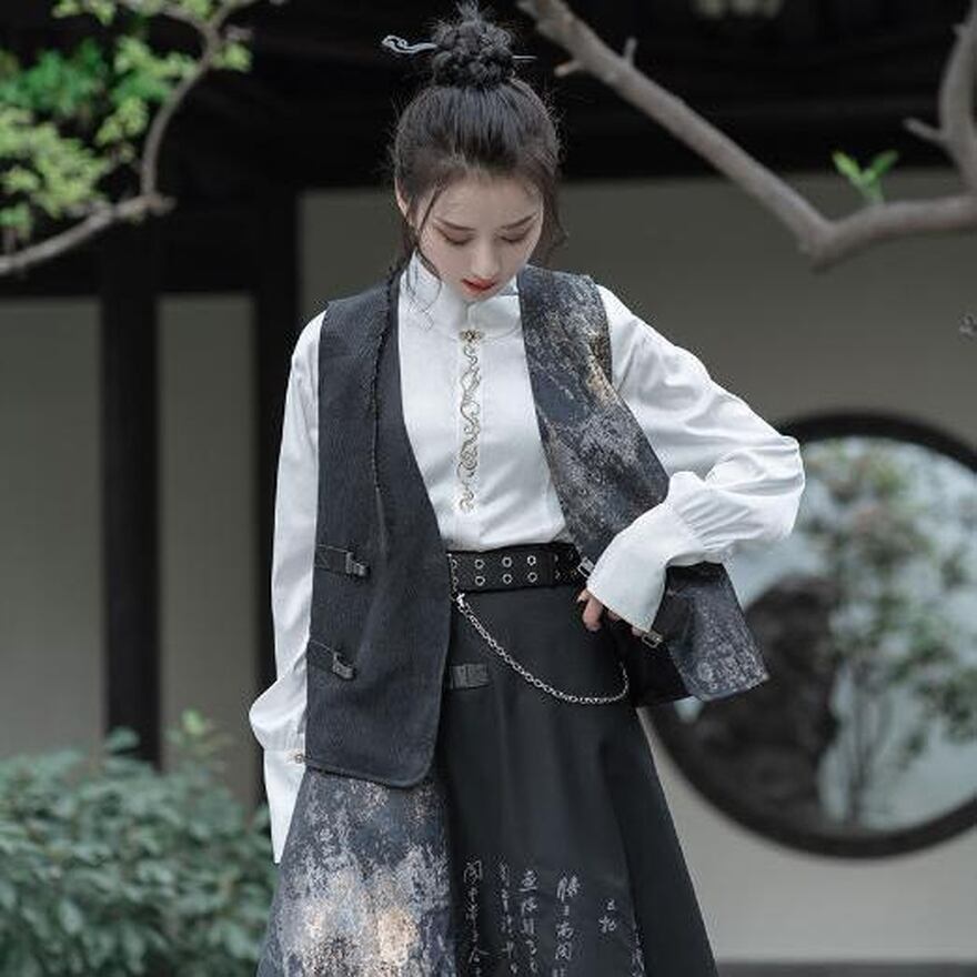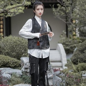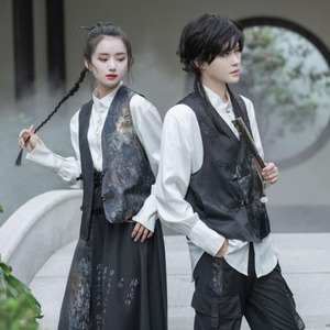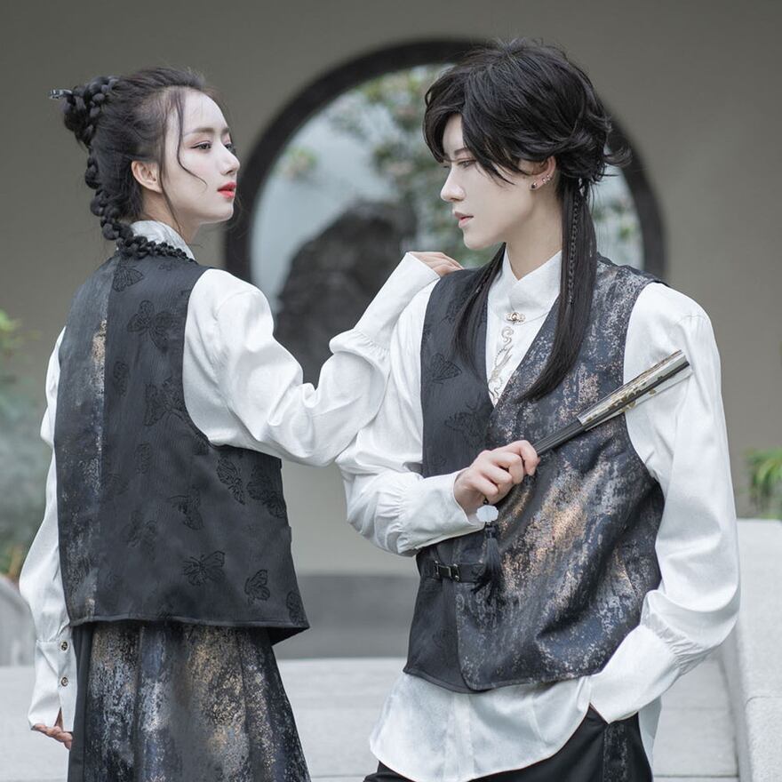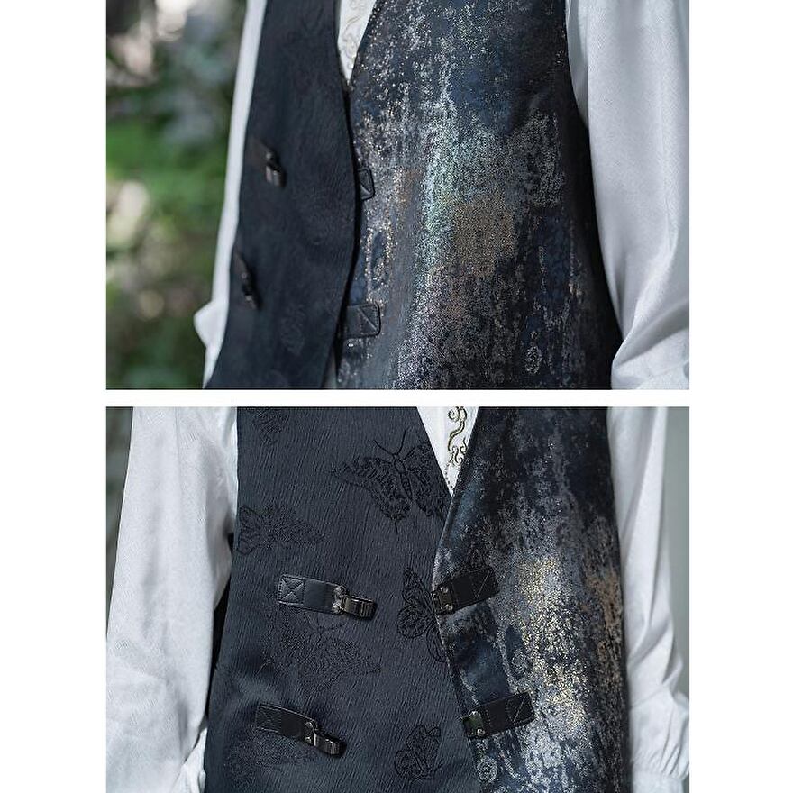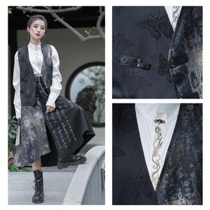 サブカル 服 地雷系 通販 春夏服 ベスト チャイナ風 プリント柄 ユニセックス クリップ留め butterfly柄 レトロチャイナ服