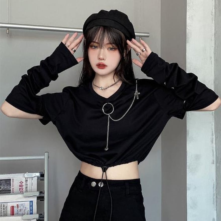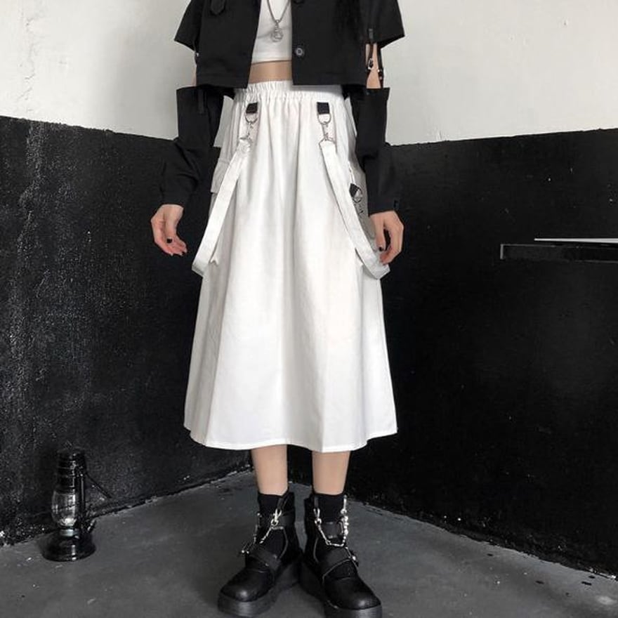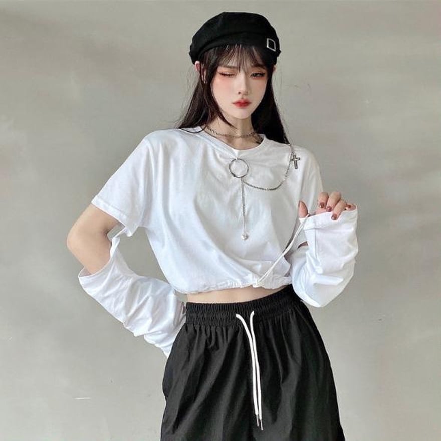 ブラックとホワイトのカラーリングが、大人っぽく上品な印象を与えます。ライブの参戦服として、ストリート系や原宿ファッションを取り入れたスタイルにもぴったりです。