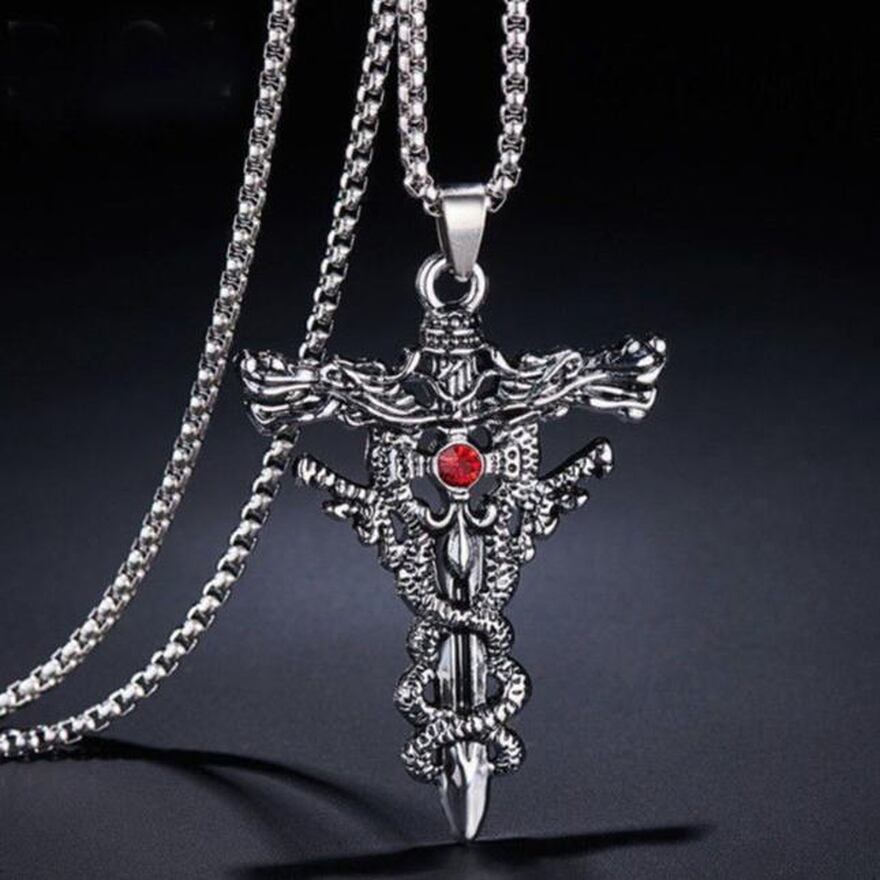 クロスのネックレスには、ドラゴン ソードペンダントが付いています。