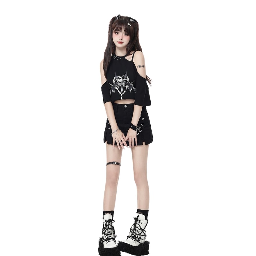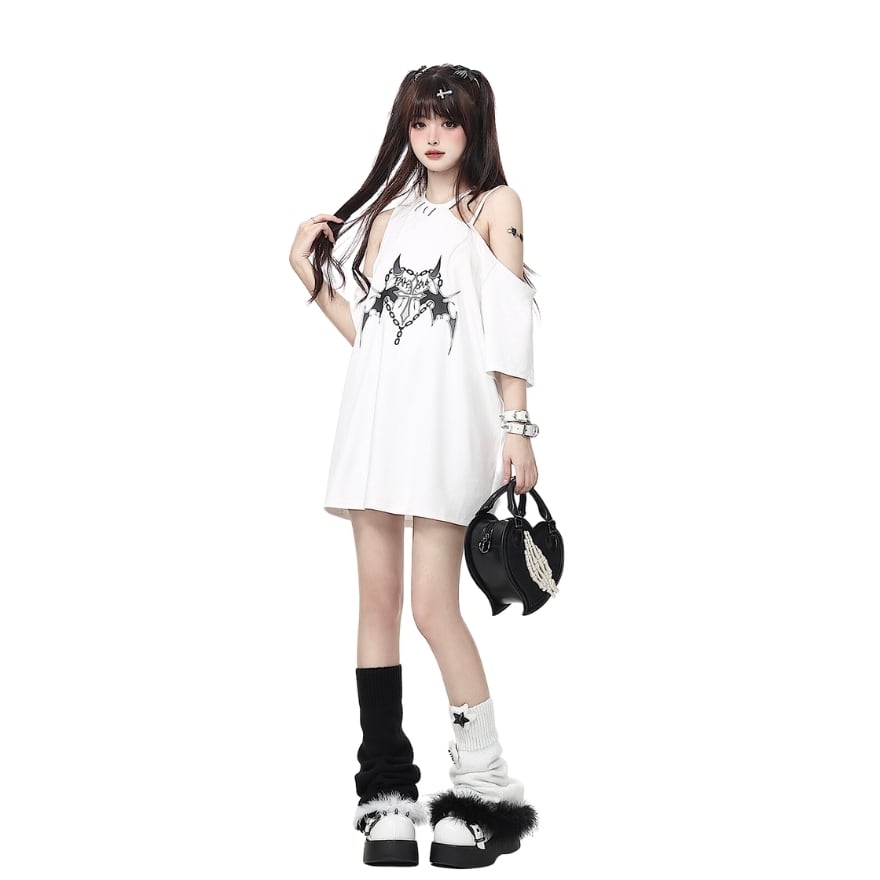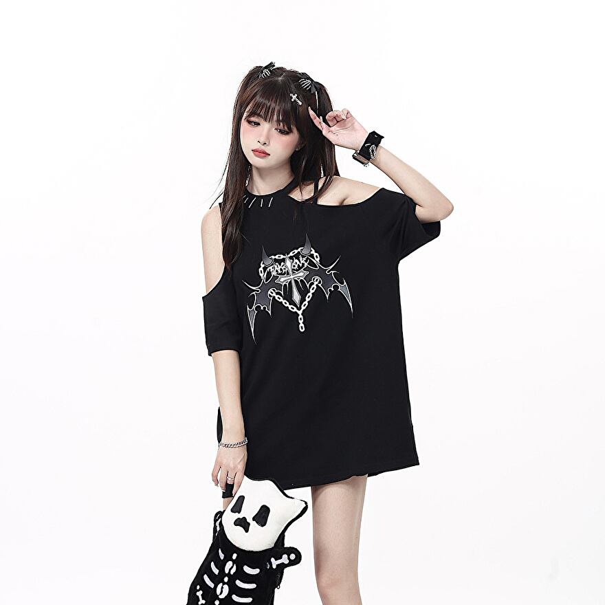 サブカル 服 地雷系 通販 CRAZYGIRL オフショル Tシャツ カットソー プリント柄 ガーリー JKファッション 服