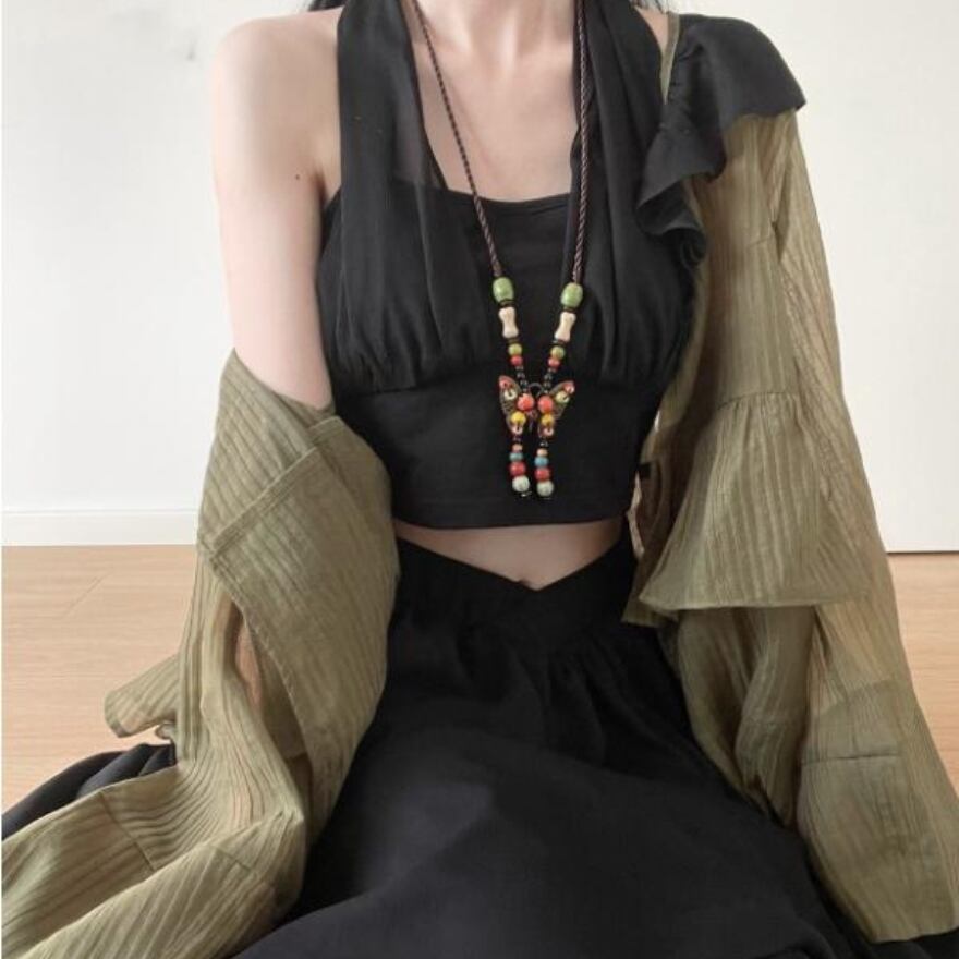 サブカル 服 地雷系 通販 pinksavior キャミソール ブラック レトロ チャイナ風 ゆったりめ JKファッション 普段着