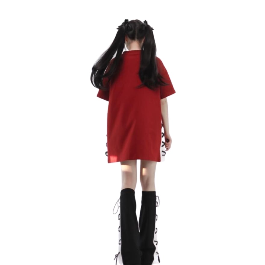 レースアップのデザインがアクセントになった地雷系夏Tシャツです。