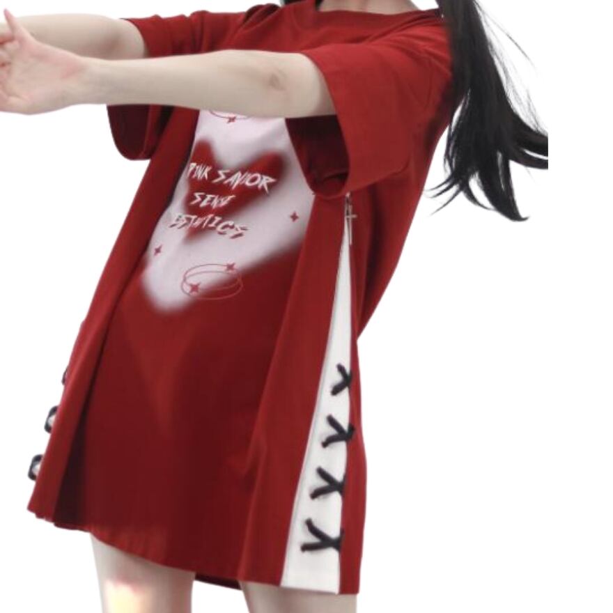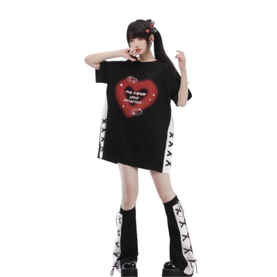 サブカル 服 地雷系 通販 pinksavior Tシャツ プリント Love レースアップ 編み上げ JKファッション 服 ストリート系