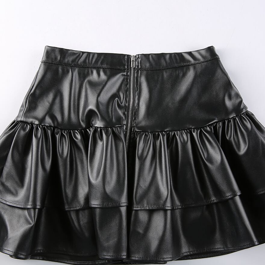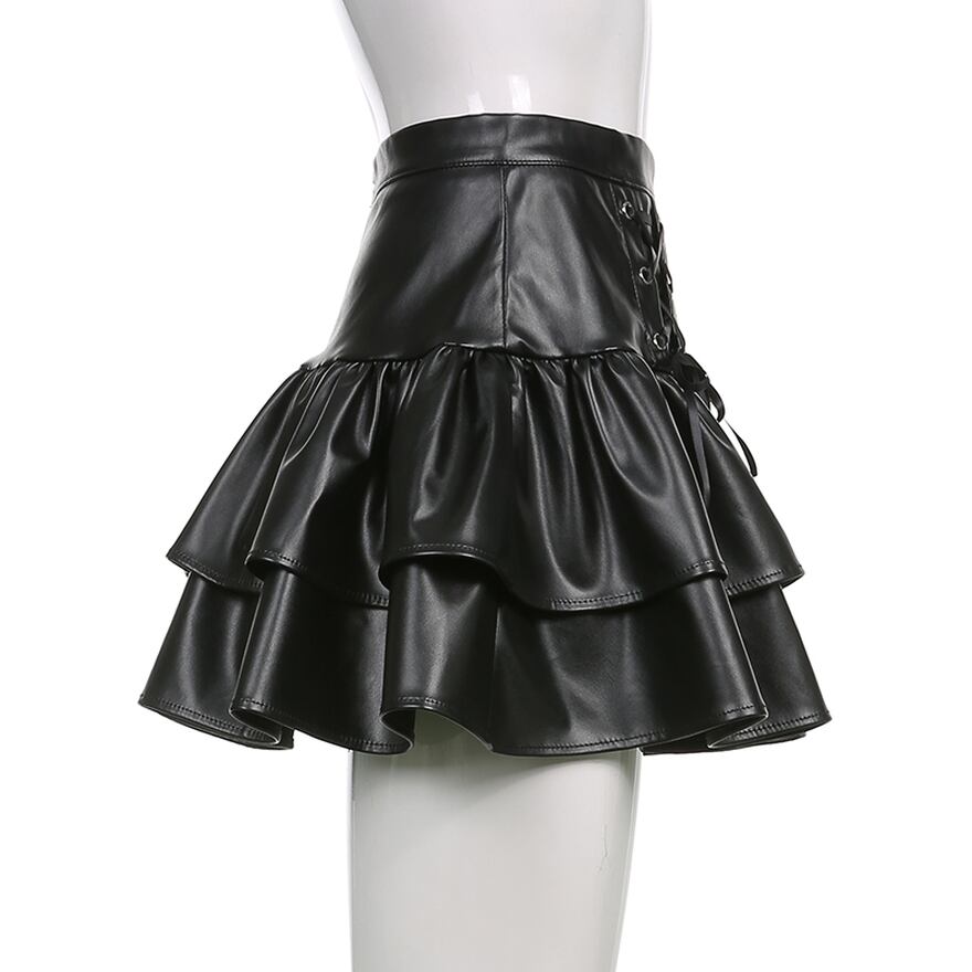 サブカル 服 地雷系 通販 スカート ミニスカ レイヤード PUレザー レースアップ 暗黒系 闇かわいい服