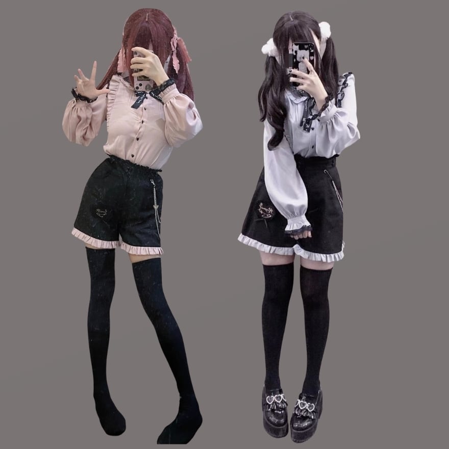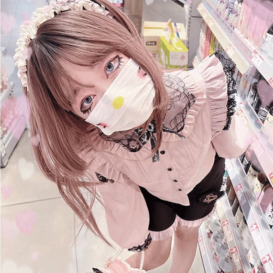 リボンやレース、フリルがついた病み可愛いデザインのサブカル系地雷ブラウスです。