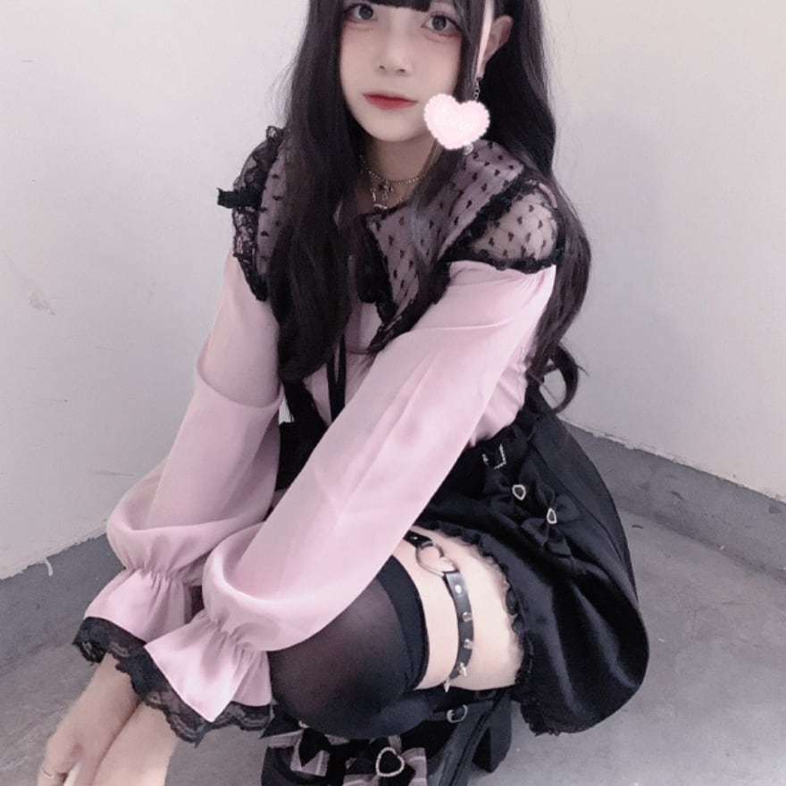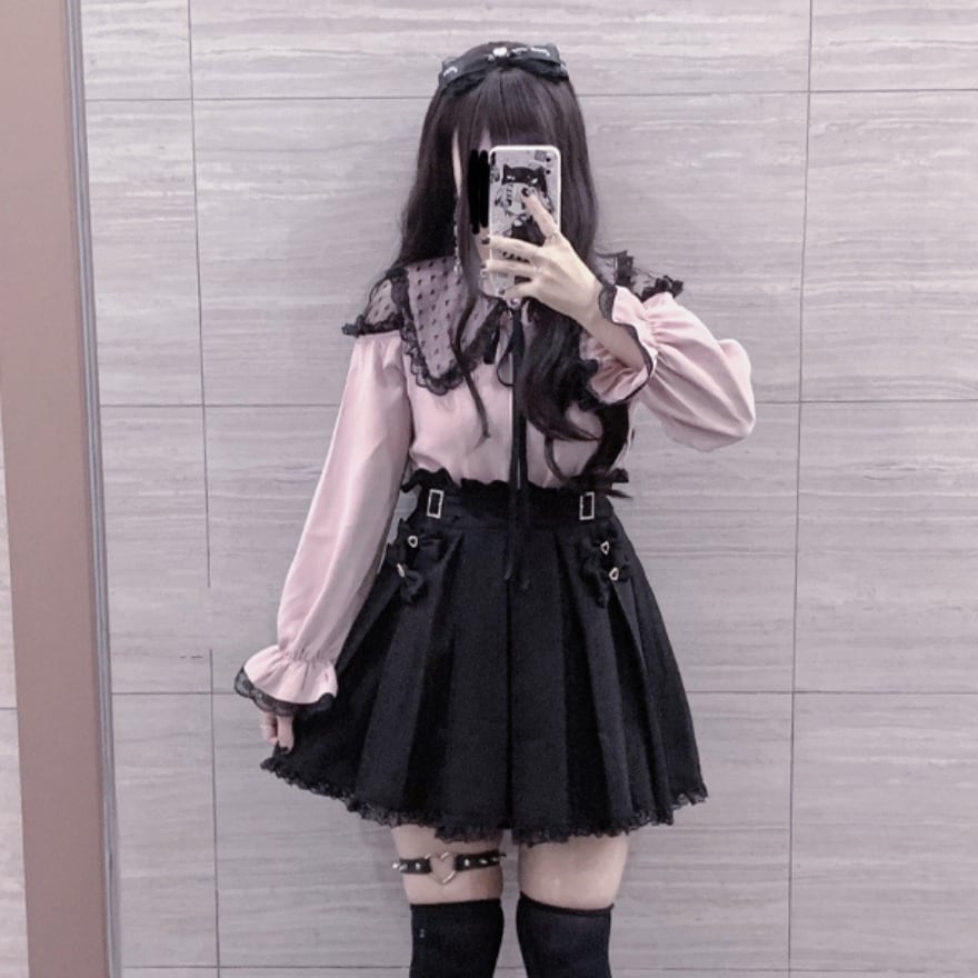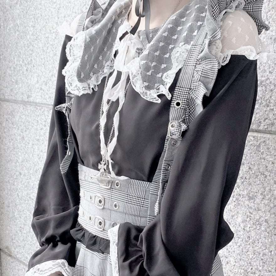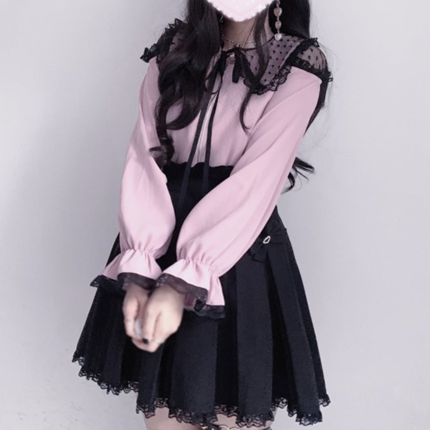 サブカル 服 地雷系 通販 ブラウス オフショル 水玉 袖コン フリル レース 闇かわいい JKスタイル 地下アイドル