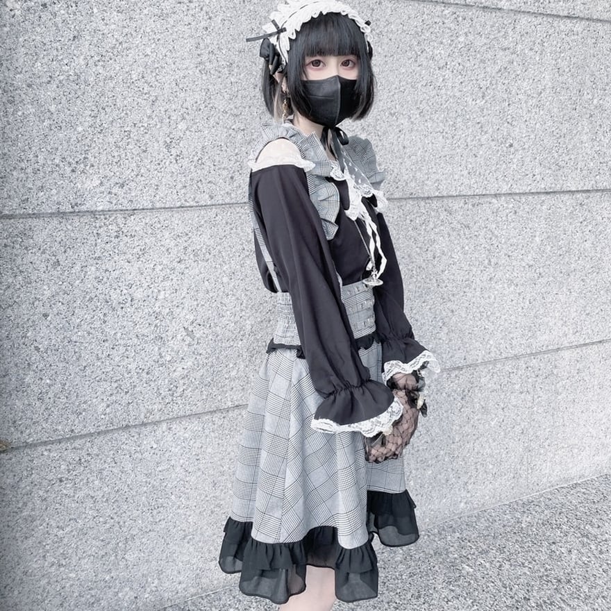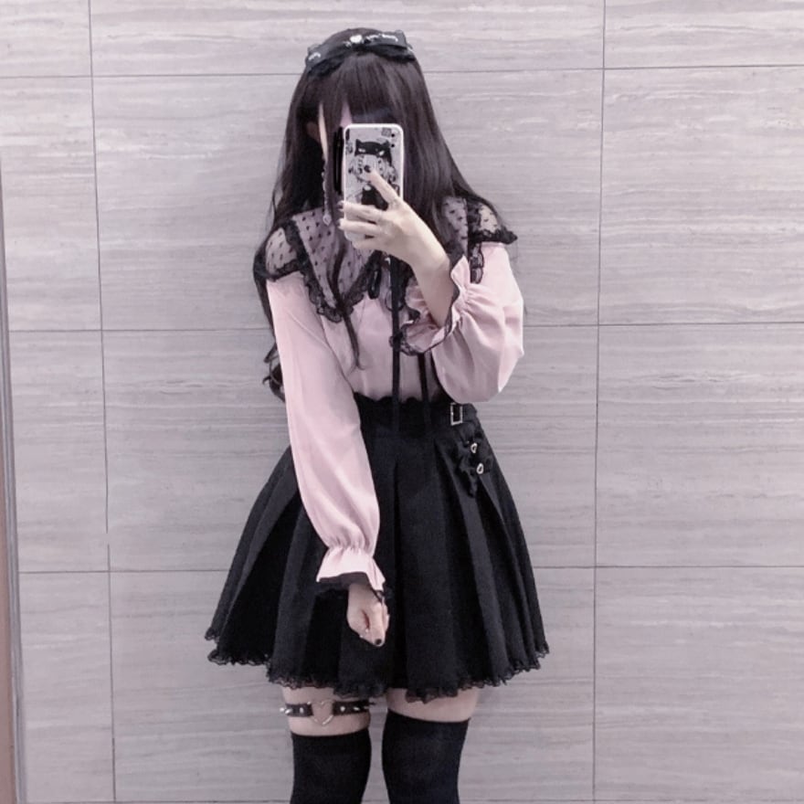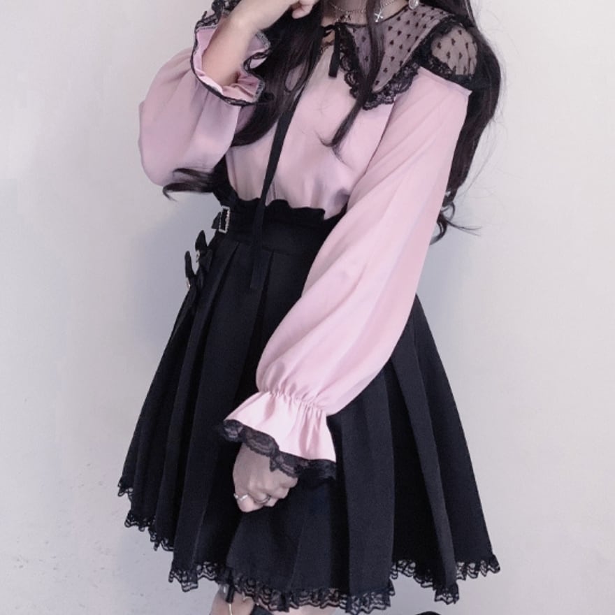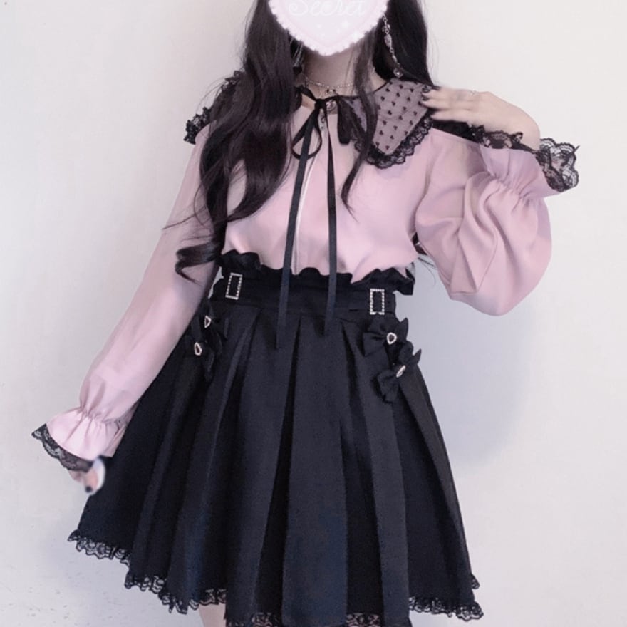 サブカル 服 地雷系 通販 ブラウス オフショル 水玉 袖コン フリル レース 闇かわいい JKスタイル 地下アイドル
