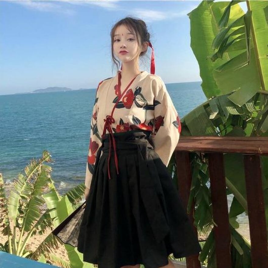 サブカル 服 地雷系 通販 サブカルファッション セットアップ 着物風 シャツ スカート ミニ丈 ロング丈 花柄 カメリア レトロ ガーリー