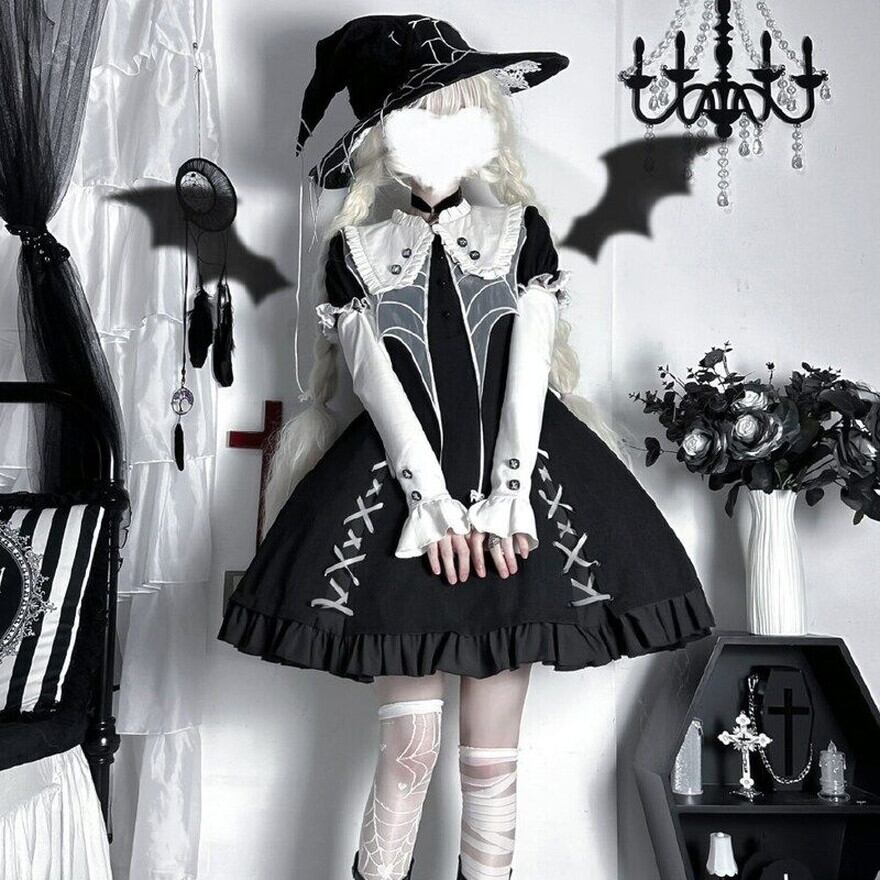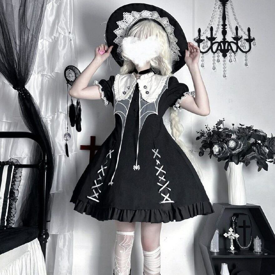 サブカル 服 地雷系 通販 サブカルファッション ワンピース 半袖 スパイダー ウィッチ 蜘蛛 魔女 病みかわ darkness