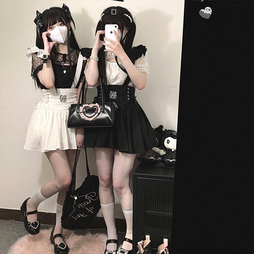 サブカル 服 地雷系 通販 量産型 ミニスカ 編み上げ ハイウエスト 双子コーデ JKスタイル 地下アイドル