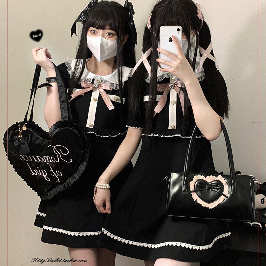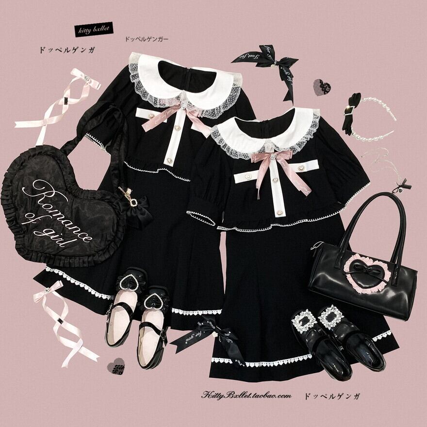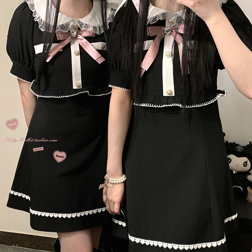 レースの襟カラーが可愛い地雷系半袖ワンピです。