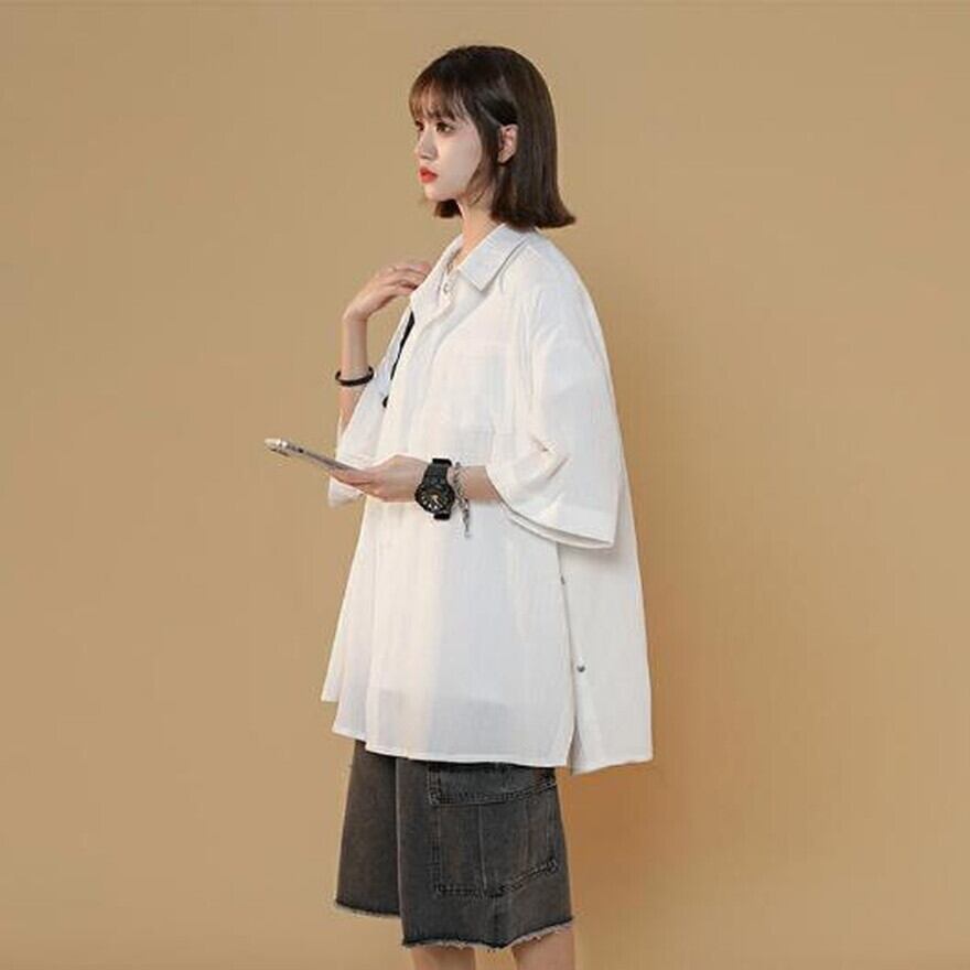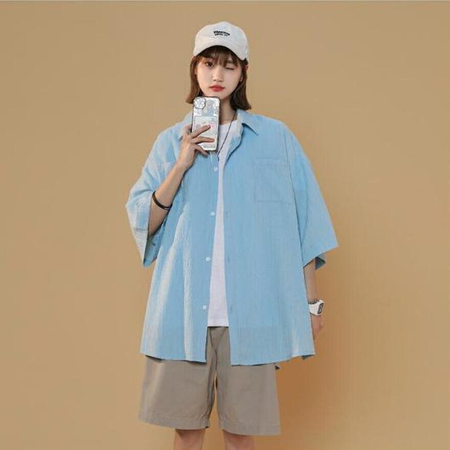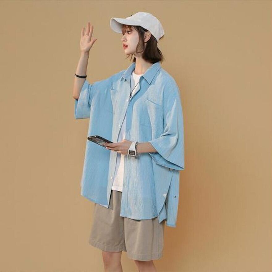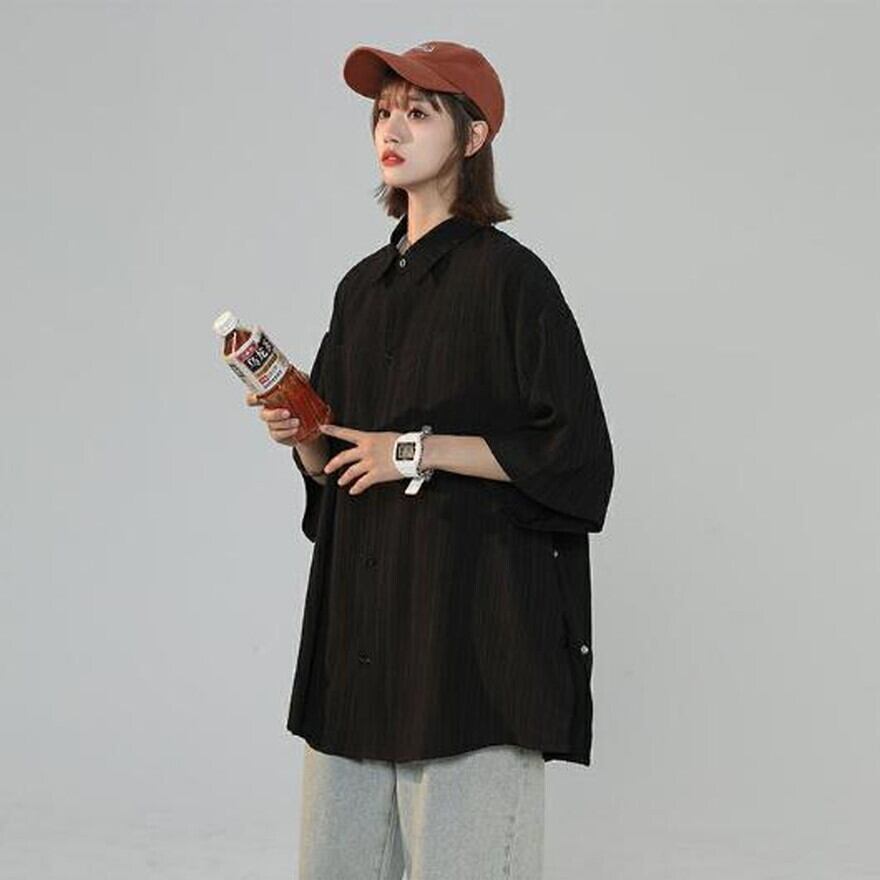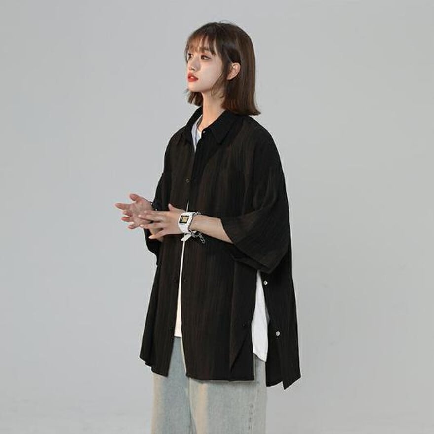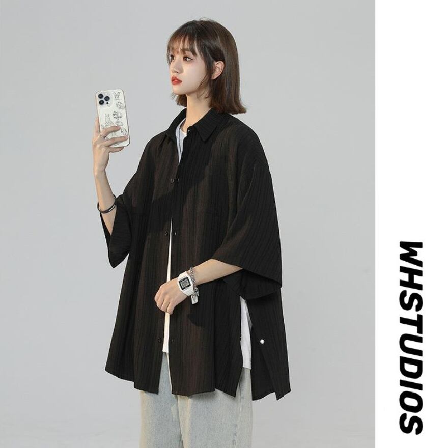 サブカル 服 地雷系 通販 半袖シャツ カジュアル サイドスリット 普段着 韓国ファッション オルチャン