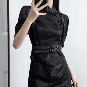 サブカル 服 地雷系 通販 セットアップ チャイナ風 立ち襟 半袖シャツ ロングスカート ウエストベルト 闇かわいい チャイナドレス ゴシック