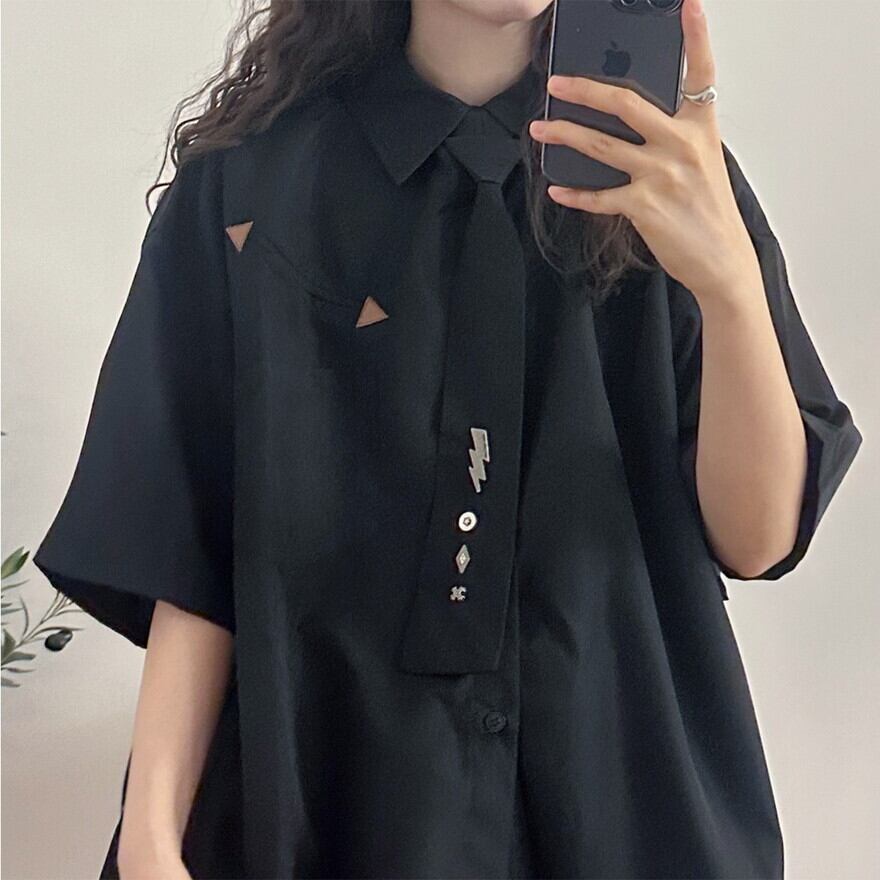 病み可愛い図形ネクタイと半袖黒シャツのセットです。