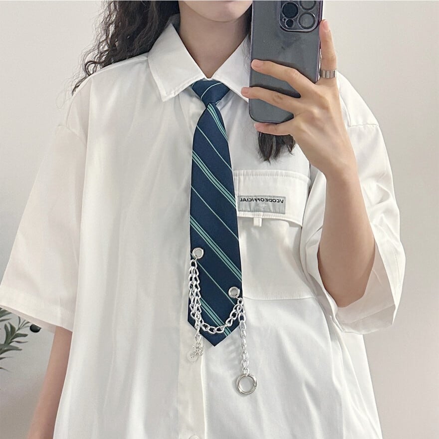 病み可愛いチェーン付ネクタイと半袖黒シャツのセットです。
