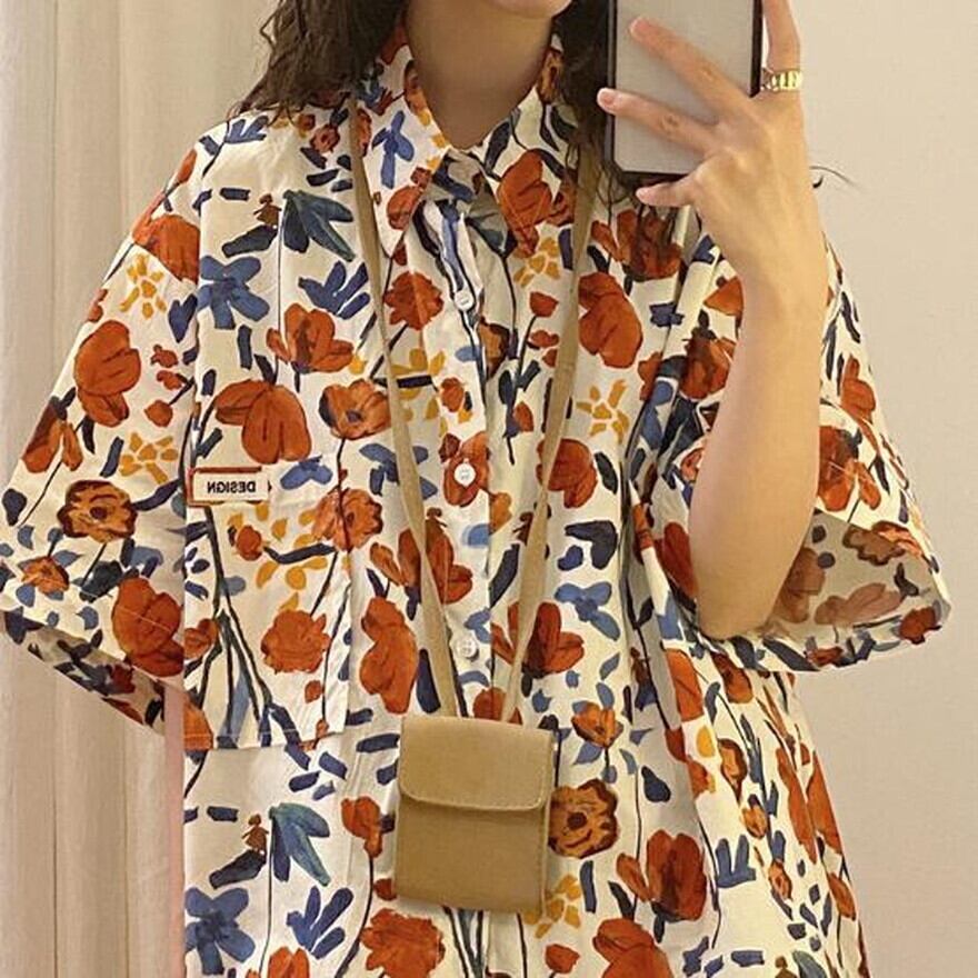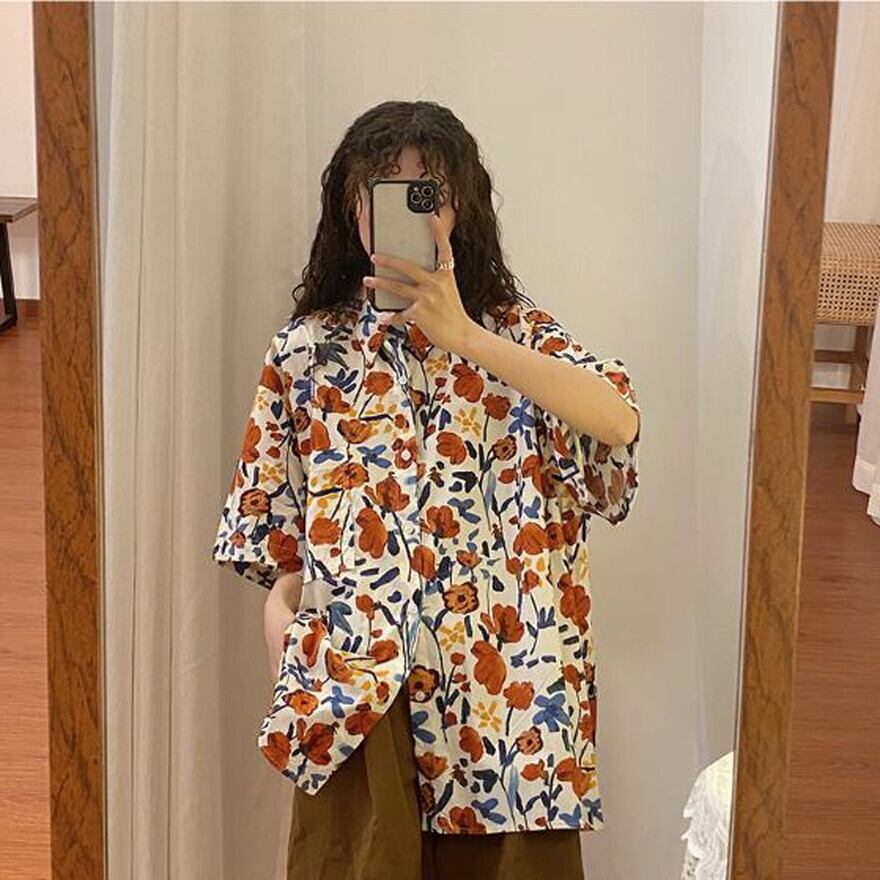サブカル 服 地雷系 通販 アメリカン レトロ アロハシャツ 花柄 ボタニカル プリント柄 半袖 Tシャツ ストリート系