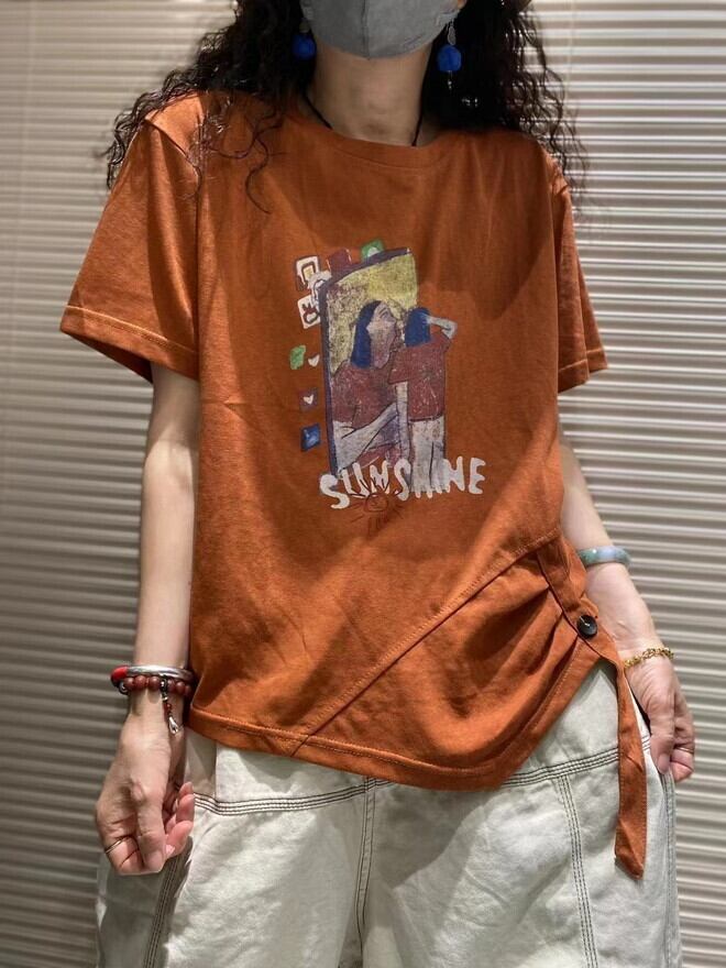 サブカル 服 地雷系 通販 森ガール ブランド Yansen Tシャツ ゆるふわ ボヘミアン アンティーク レトロ プリント柄 ストリート系