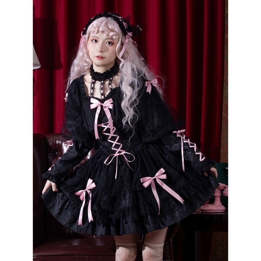 胸元には可愛らしいレースアップのデザインが施され、フロントに付いたリボンが病み可愛いおしゃれを演出