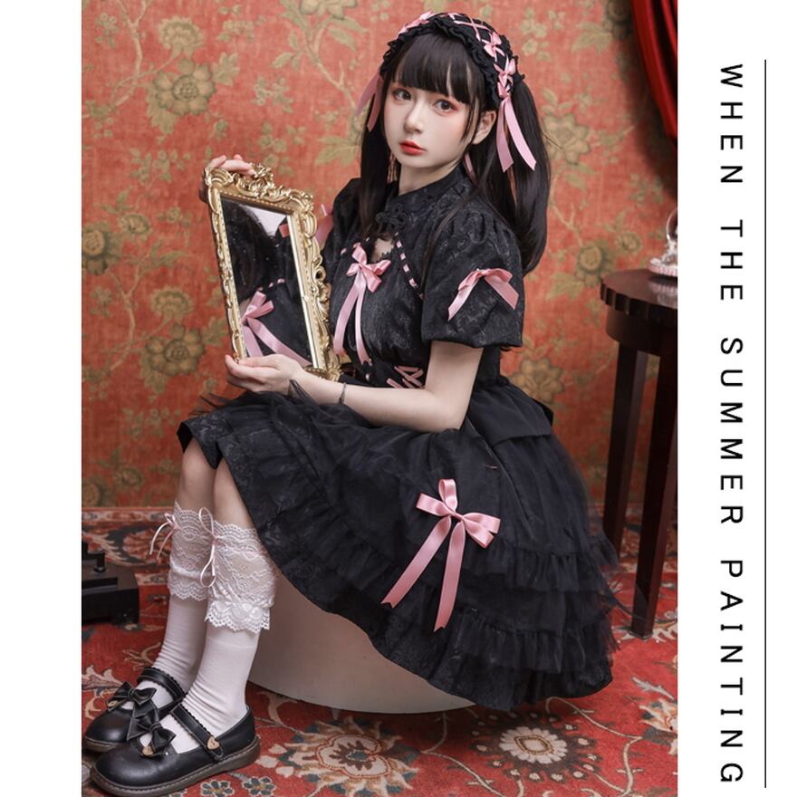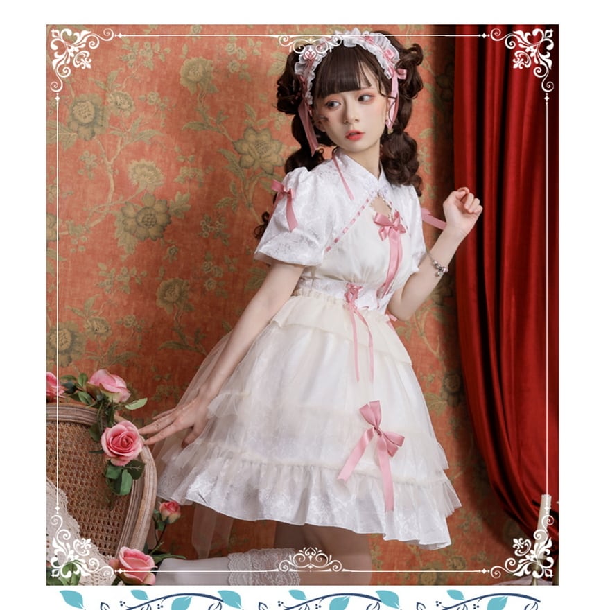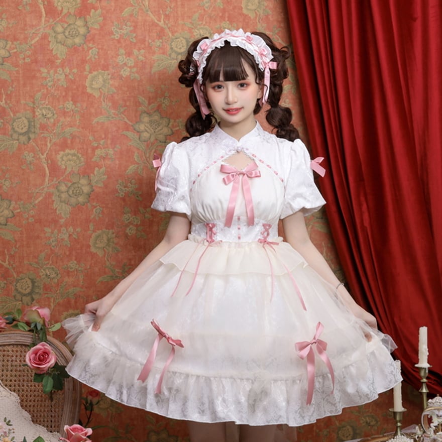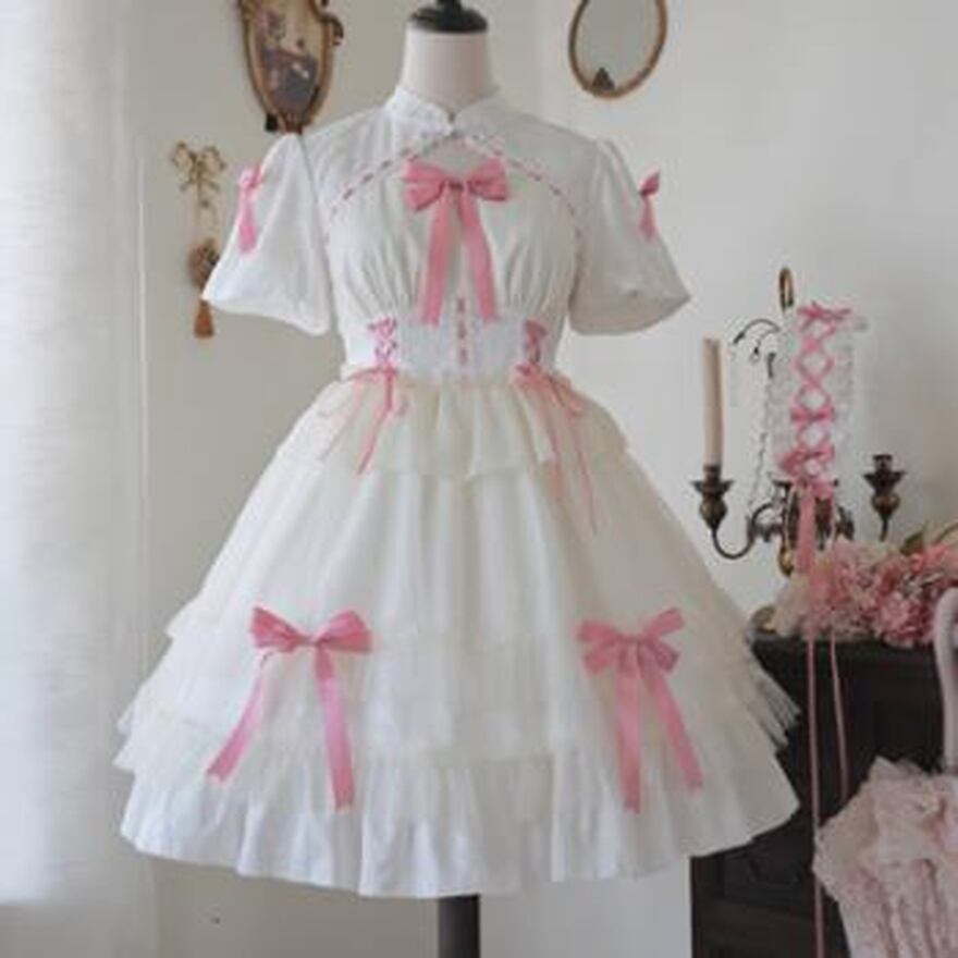 サブカル 服 地雷系 通販 華ロリ プリンセスワンピ リボン レース ガーリー 甘め ロマンティック ゆめかわ 甘め
