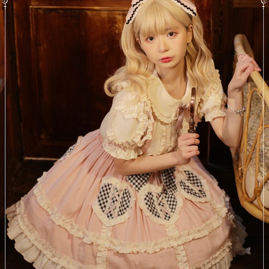 チェック柄のハートがかわいいロリータスカートです。パニエを足してふわっと広がるスカートがおしゃれ増し