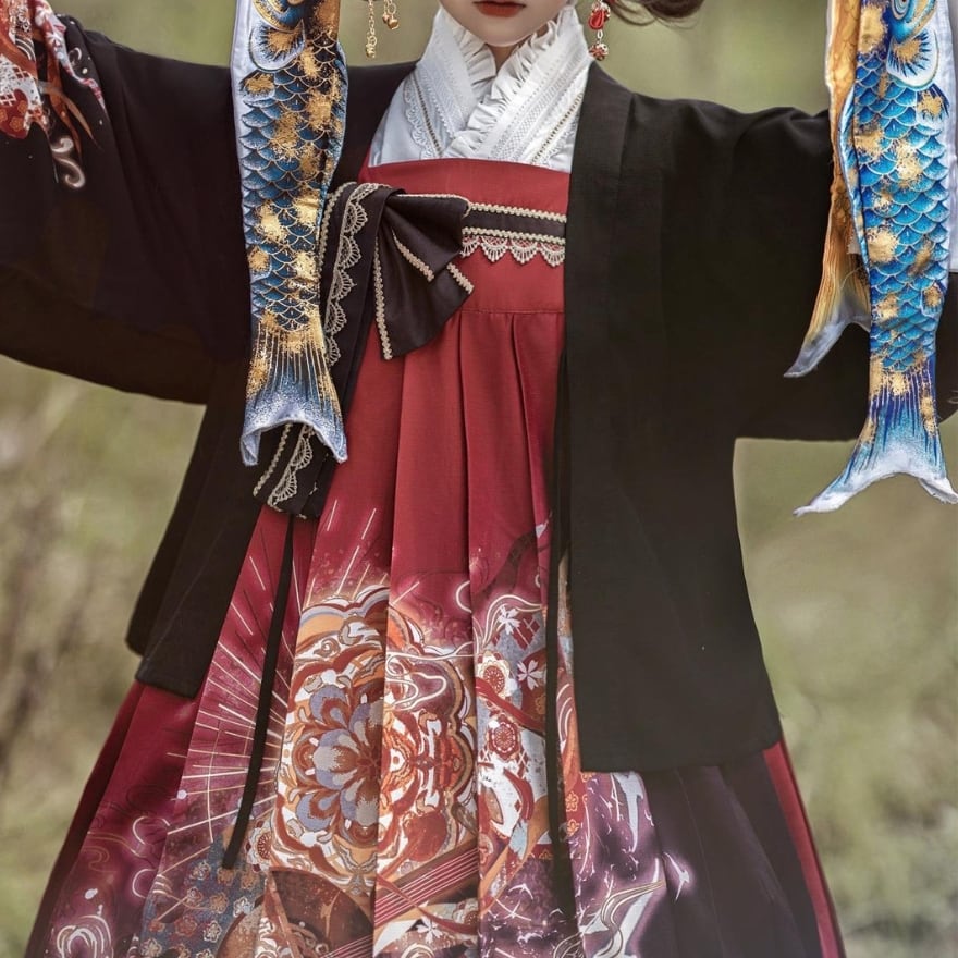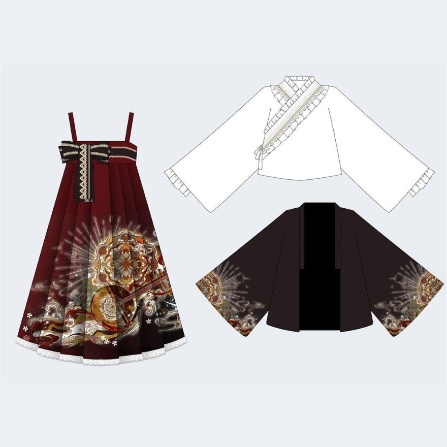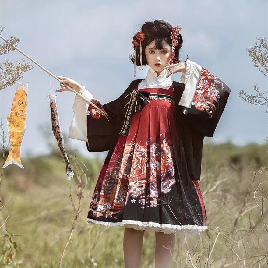 サブカル 服 地雷系 通販 和ロリ 着物 和装 3点セット 羽織り シャツ スカート リボン レトロ ガーリー 甘め 可愛い