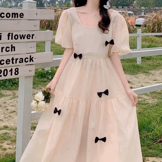 ふわっと可愛いレースウレイヤードにリボンが散りばめられた半袖ワンピです。