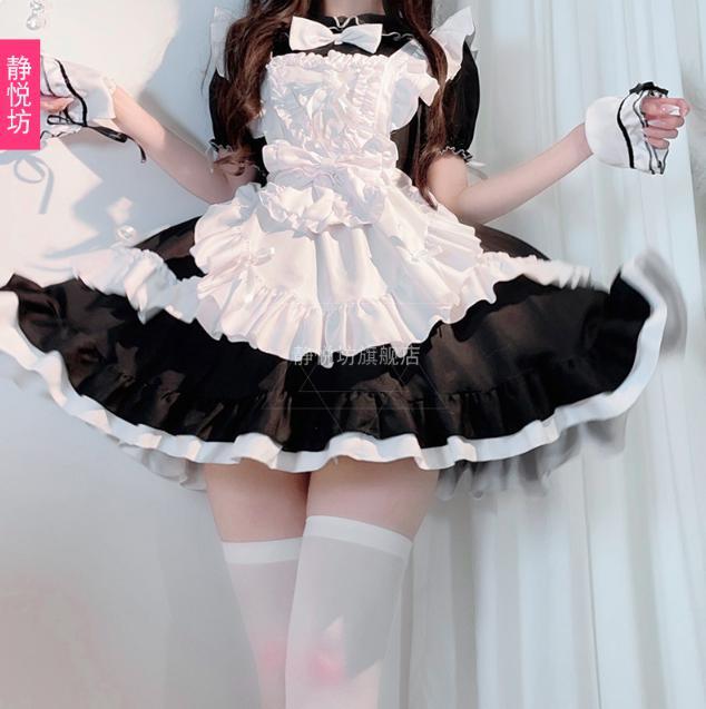 サブカル 服 地雷系 通販 メイド服 4点セット ワンピ エプロン カチューシャ リボン チェック柄 秋葉原 メイドカフェ コスプレ