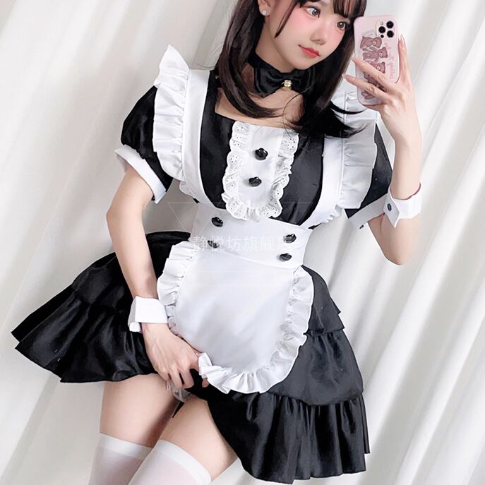 サブカル 服 地雷系 通販 メイド服 5点セット ワンピ エプロン ヘッドアクセアリー アームカバー ストッキング 秋葉原 メイドカフェ コスプレ