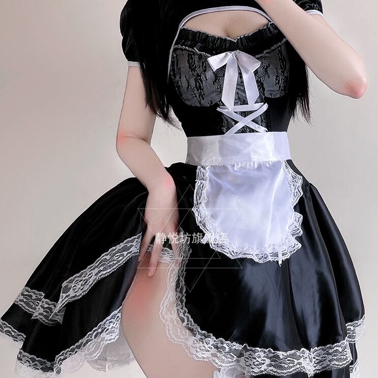 サブカル 服 地雷系 通販 メイド服 3点セット ワンピ エプロン ヘッドアクセアリー チャイナ風 秋葉原 メイドカフェ コスプレ