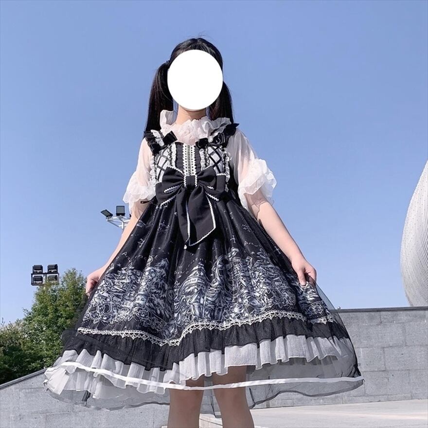 サブカル 服 地雷系 通販 スイートロリータ 3点セット 半袖ブラウス JSK レーススカートカバー リボン スイートロリータ ガーリー 甘め ロマンティック