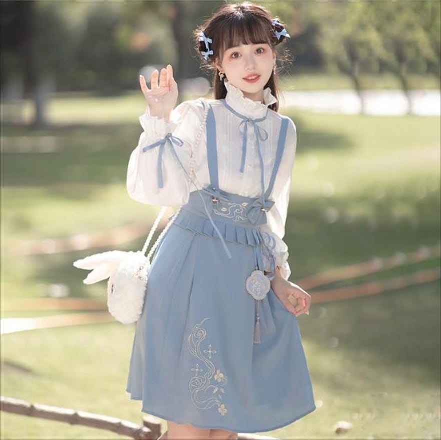 サブカル 服 地雷系 通販 華ロリ セットアップ ブラウス スカート 刺繍 チャイナ風 ハイウエスト レース ガーリー 甘め ロマンティック