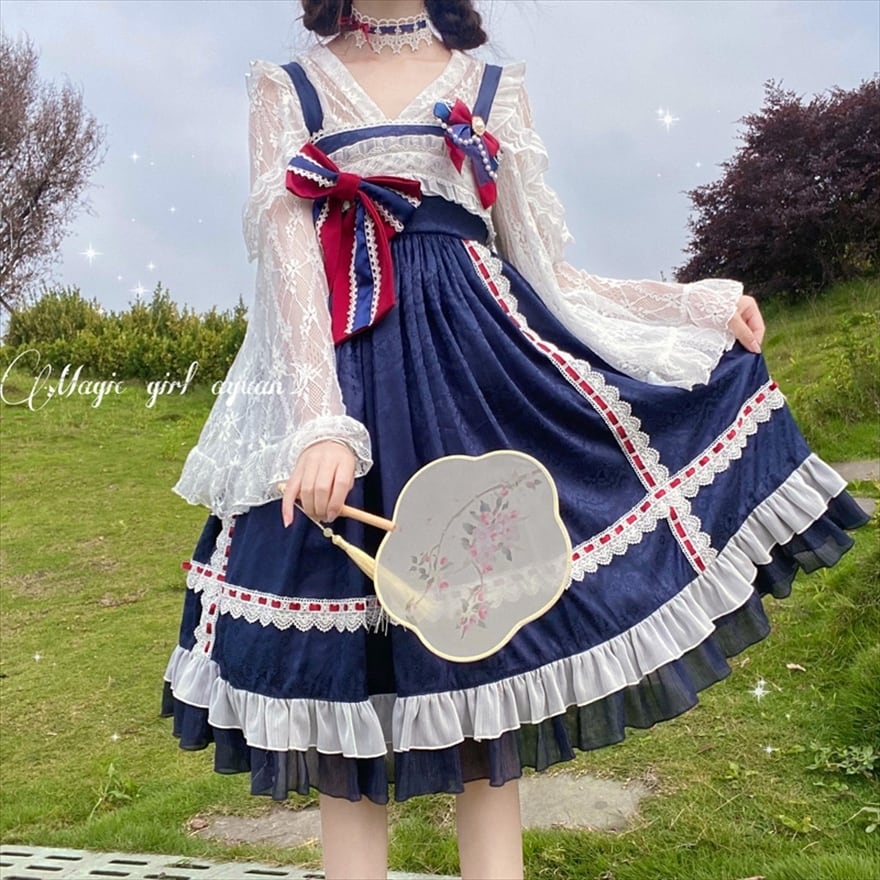 サブカル 服 地雷系 通販 スイートロリ?タ JSK ハイウエスト リボン ガーリー 甘め ロマンティック