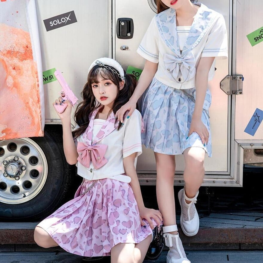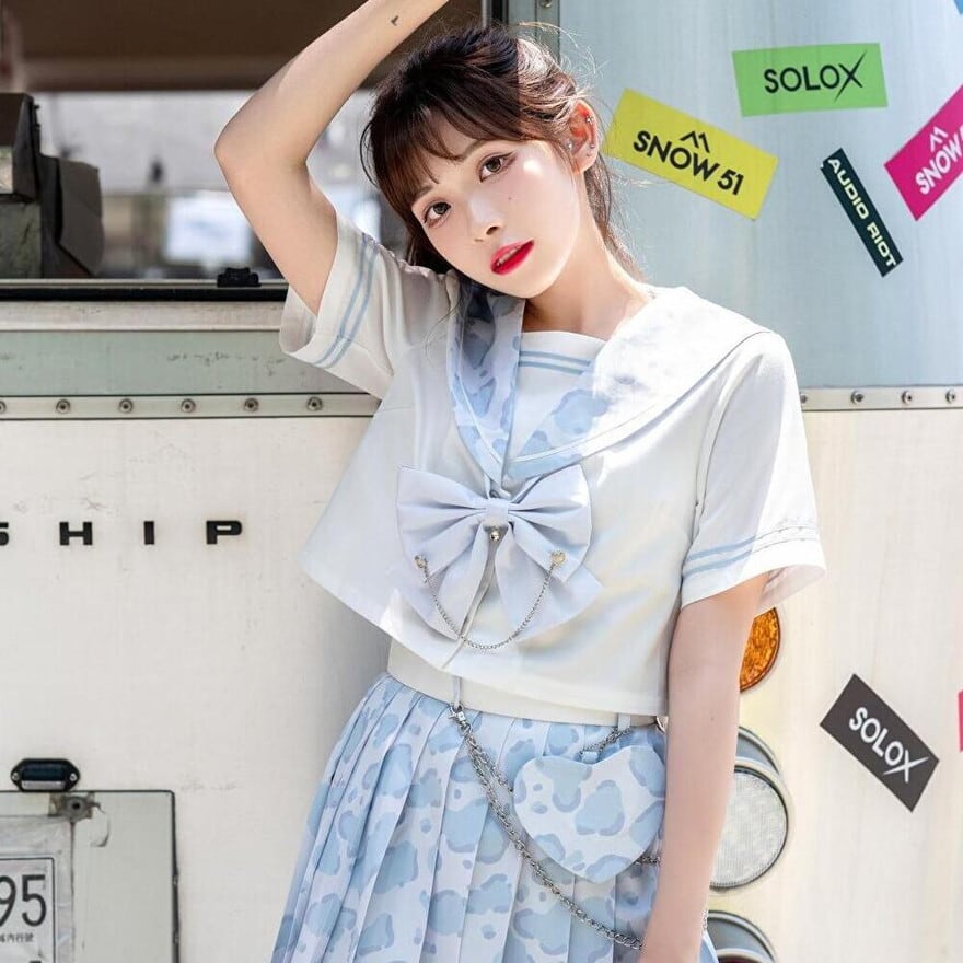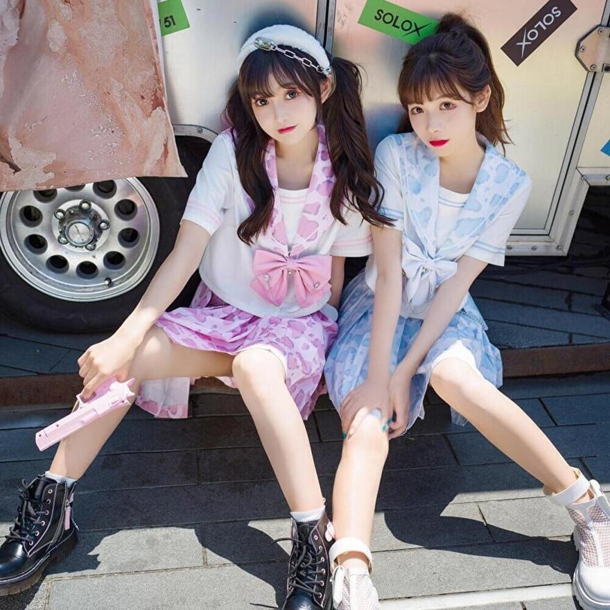 サブカル 服 地雷系 通販 セットアップ セーラー服 半袖 プリーツスカート リボン ガーリー 甘め ロマンティック ゆめかわ