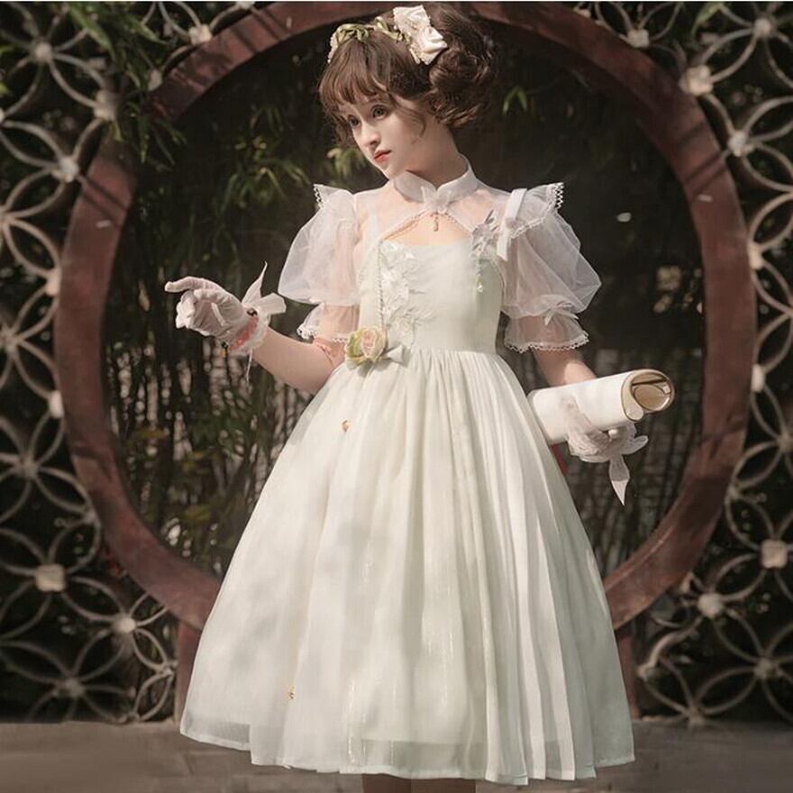 使い回しが利く美しいレースのボレロとチャイナ風刺繍の半袖ワンピです。