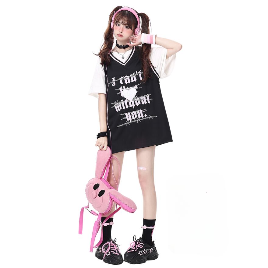 サブカル 服 地雷系 通販 CRAZYGIRL ベスト スポーティ プリント柄 ロリータ 系