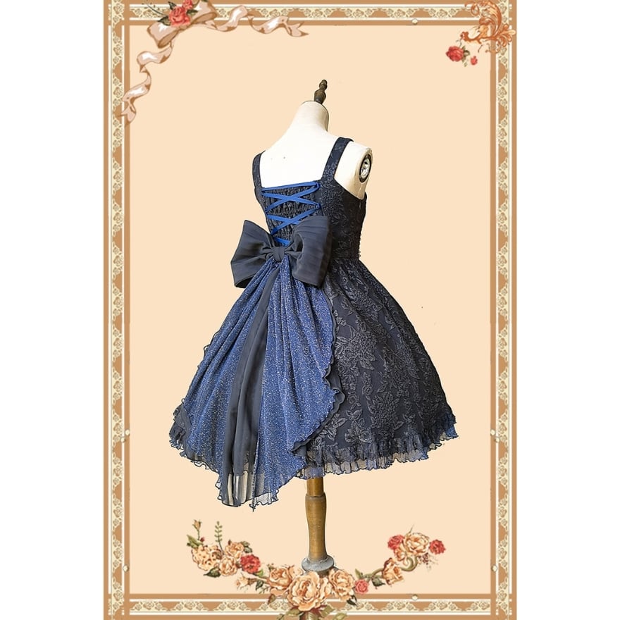 バックのレースアップに大きなリボンがビジュアル抜群な闇かわいいゴスロリJSKです。