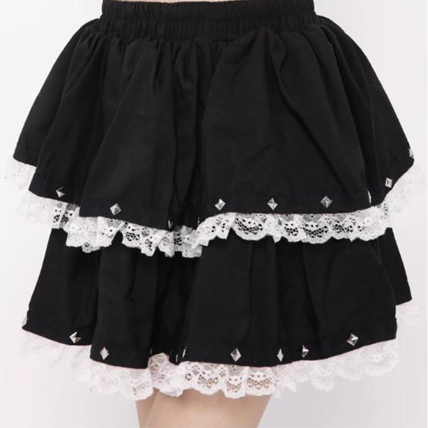 レースの切替えにスタッズがおしゃれな病み可愛い地雷系ミニスカです