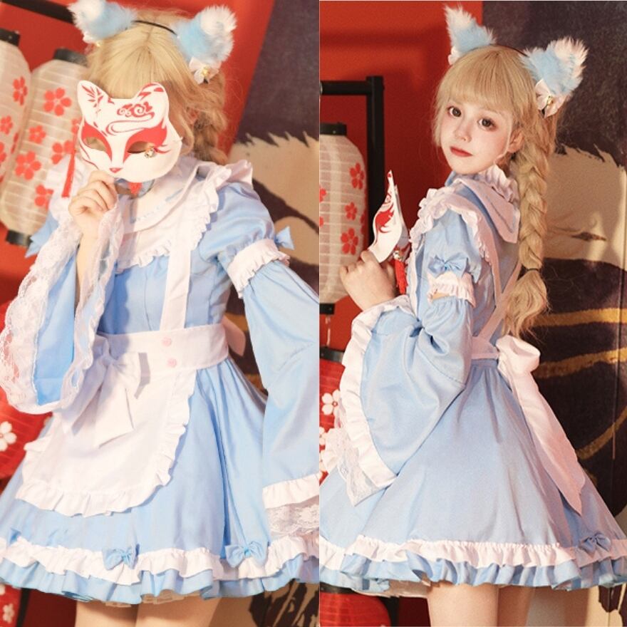 サブカル 服 地雷系 通販 メイド服 ワンピ ワイドスリーブ フリル リボン コスプレ 舞台衣装 イベント 甘め ガーリー