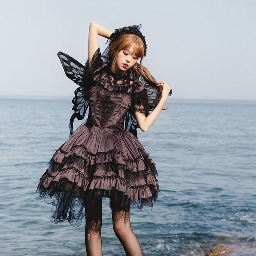 ハイウエストなデザインなオフショルだから女性らしい華奢見せが叶うゴスロリワンピです。