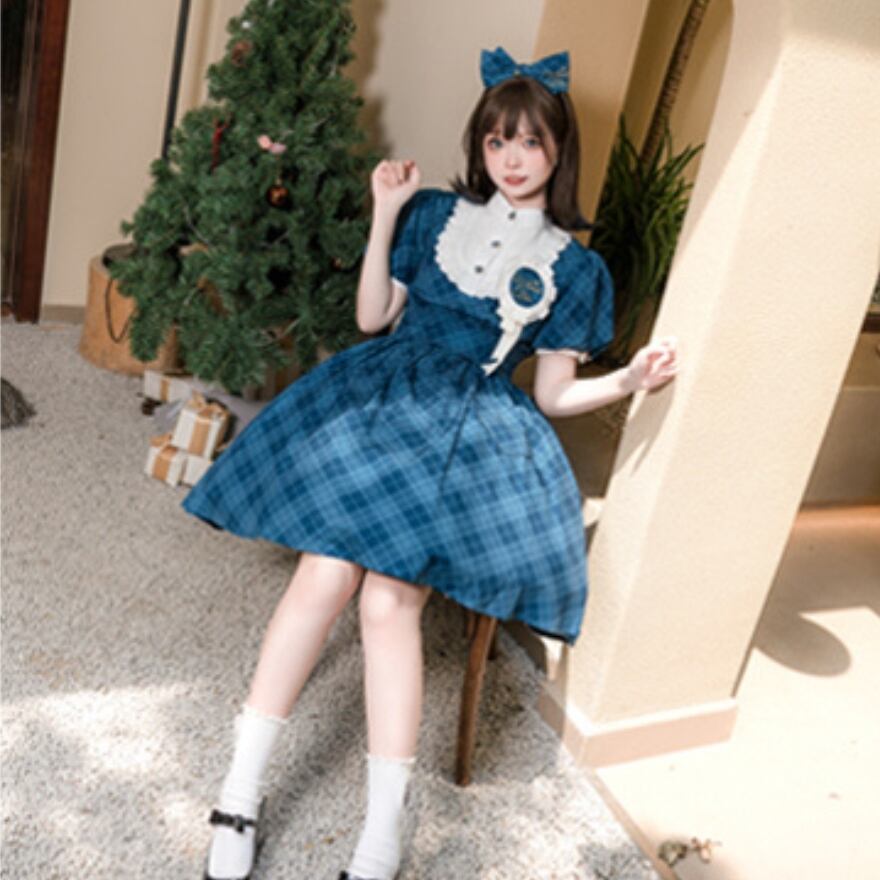 サブカル 服 地雷系 通販 クラロリ ワンピ 半袖 チェック柄 レトロ ガーリー おしゃれ増し