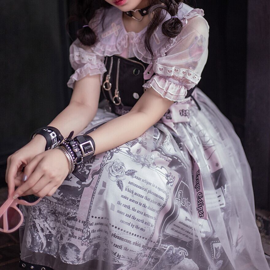 サブカル 服 地雷系 通販 ブラウス 半袖 ホワイト ピンク レース ガーリー おしゃれ増し