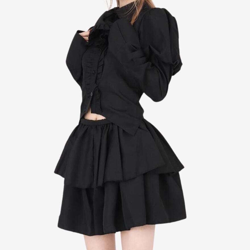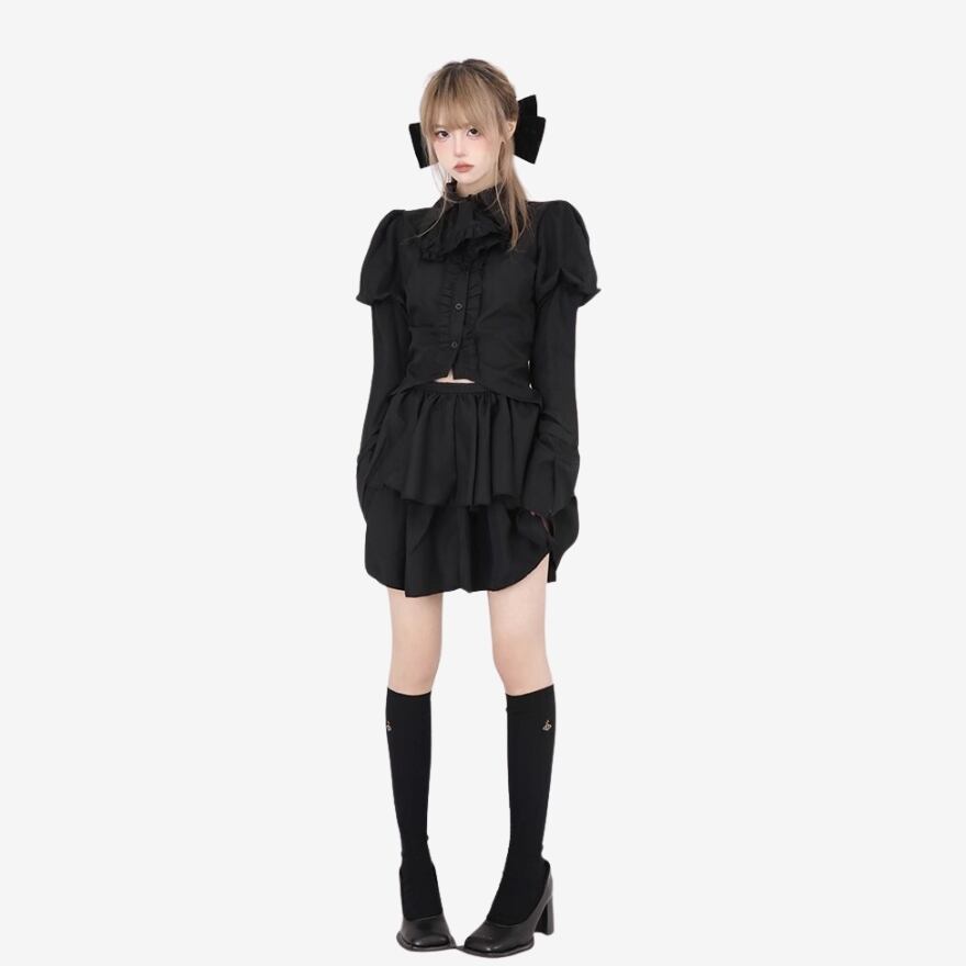 クールなゴシックデザインの地雷系長袖シャツとミニスカのセットアップです。
