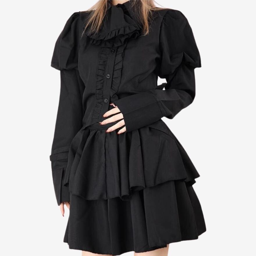 サブカル 服 地雷系 通販 ツーピース シャツ パフスリーブ ミニスカ 闇かわいい ゴシック バンギャ