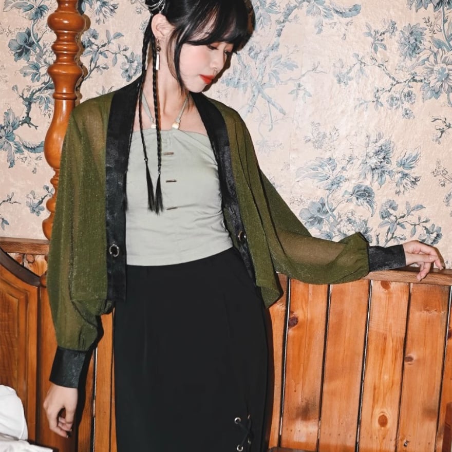 サブカル 服 地雷系 通販 チャイナ風服 チャイナ風服 古怪舎 チャイナ風 中華風 チャイナ服 カーディガン 羽織り シアー ショート丈 レトロ 闇かわいい量産型