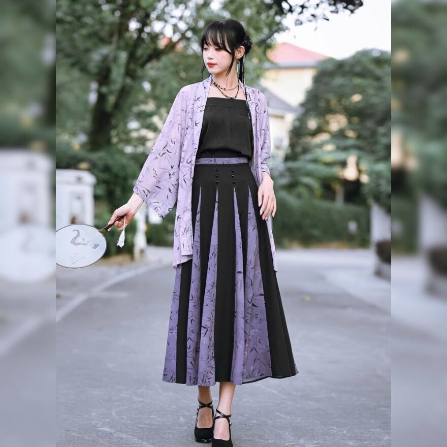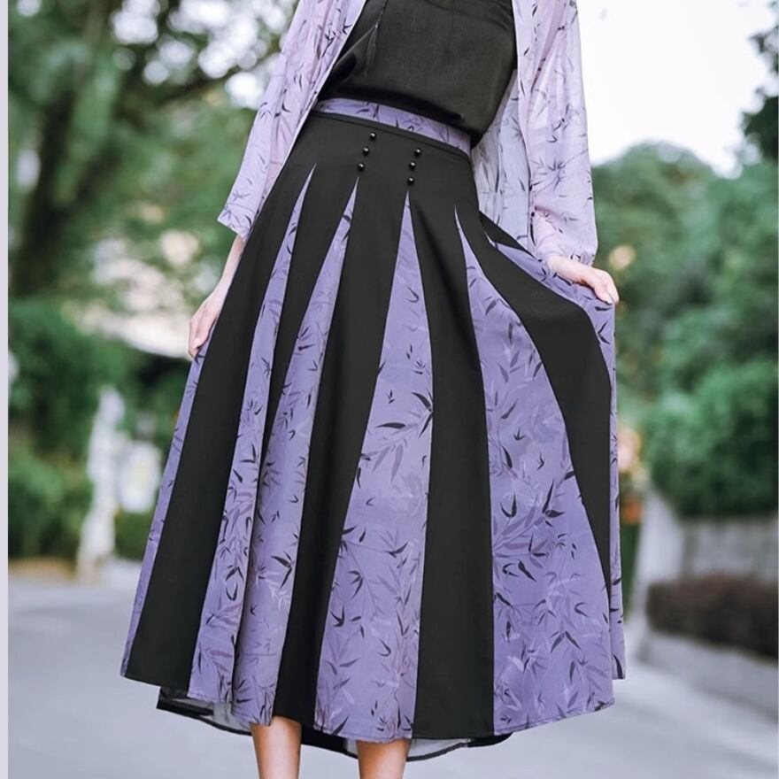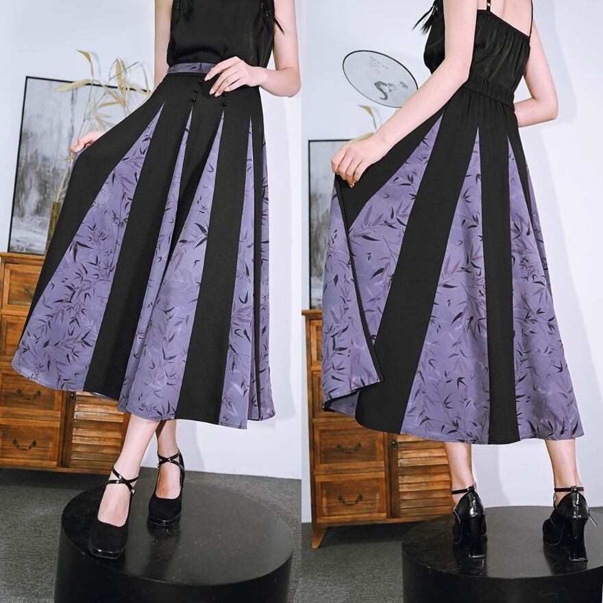 サブカル 服 地雷系 通販 チャイナ風服 チャイナ風服 古怪舎 竹意序 チャイナ風 スカート バイカラー banboo柄 プリント柄 闇かわいい量産型