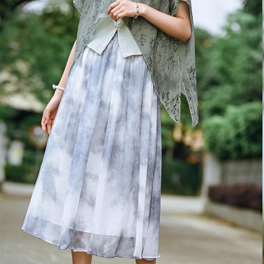 サブカル 服 地雷系 通販 チャイナ風服 チャイナ風服 古怪舎 絞り染風 チャイナ風 スカート シフォン レース 闇かわいい