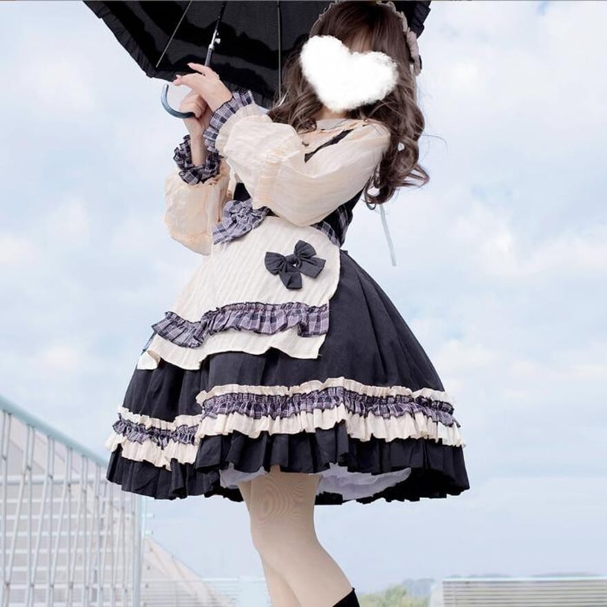 サブカル 服 地雷系 通販 ロリータ アイドル衣装 ワンピ ケーキスカート チェック柄 エプロン メイド服 フリル ガーリー 甘め ロマンティック ゆめかわ