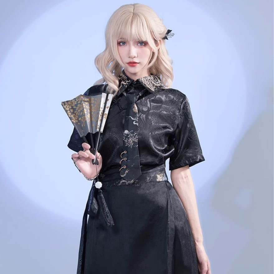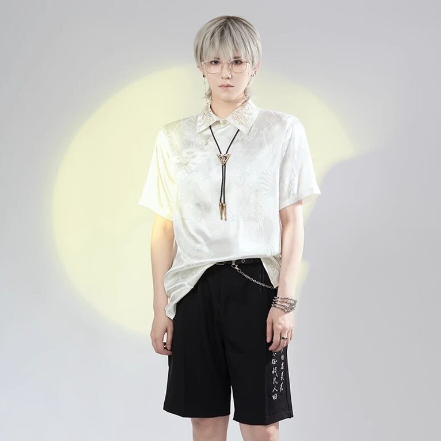 ユニセックスで着用頂けるチャイナ刺繍が病み可愛い半袖シャツです。